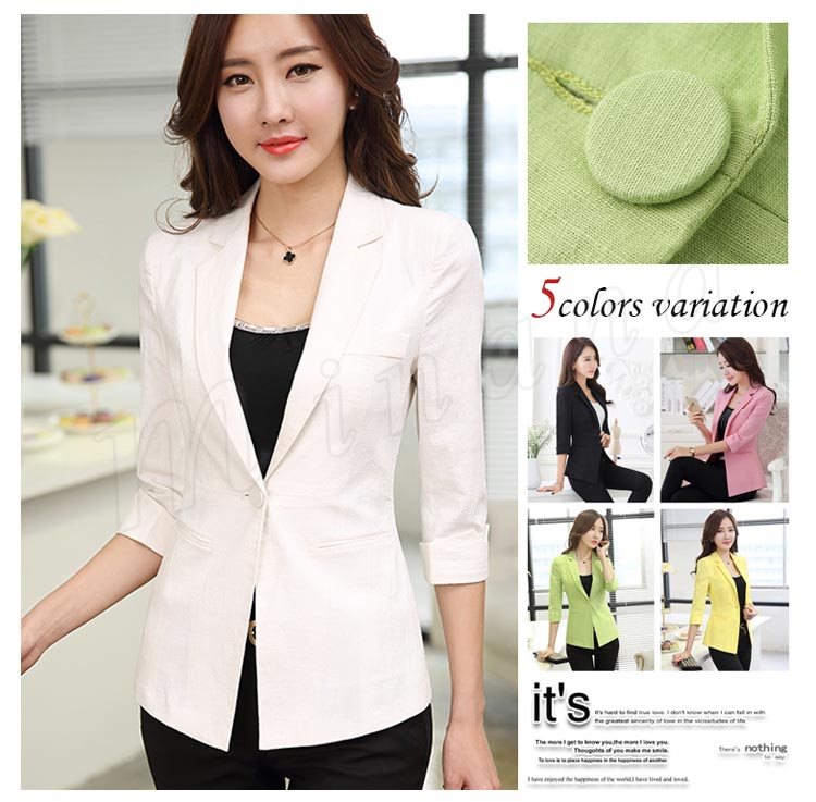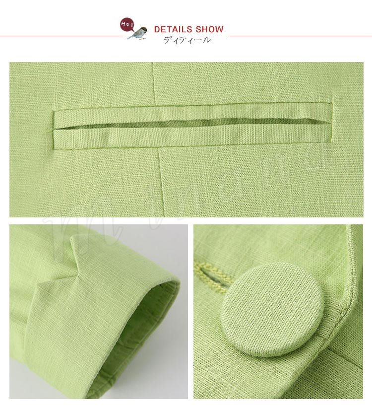 2018新作/テーラードジャケット/大きいサイズ/レディース/無地/綿麻/リネン/カジュアルスーツ/七分袖/ビジネス/春夏秋/通勤/オフィス/コー