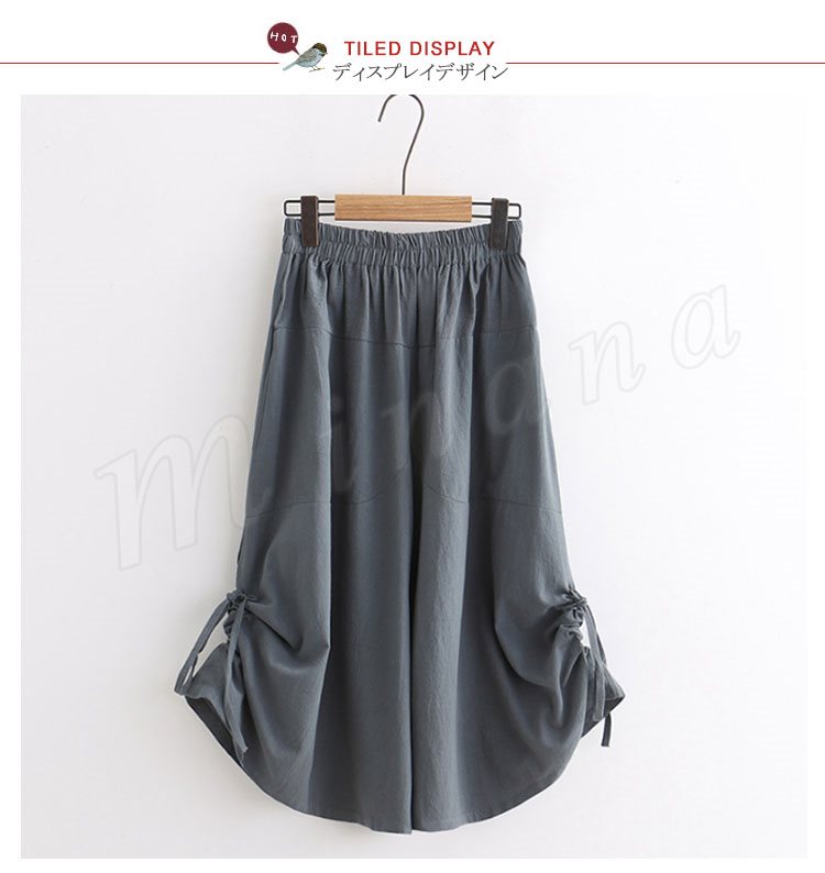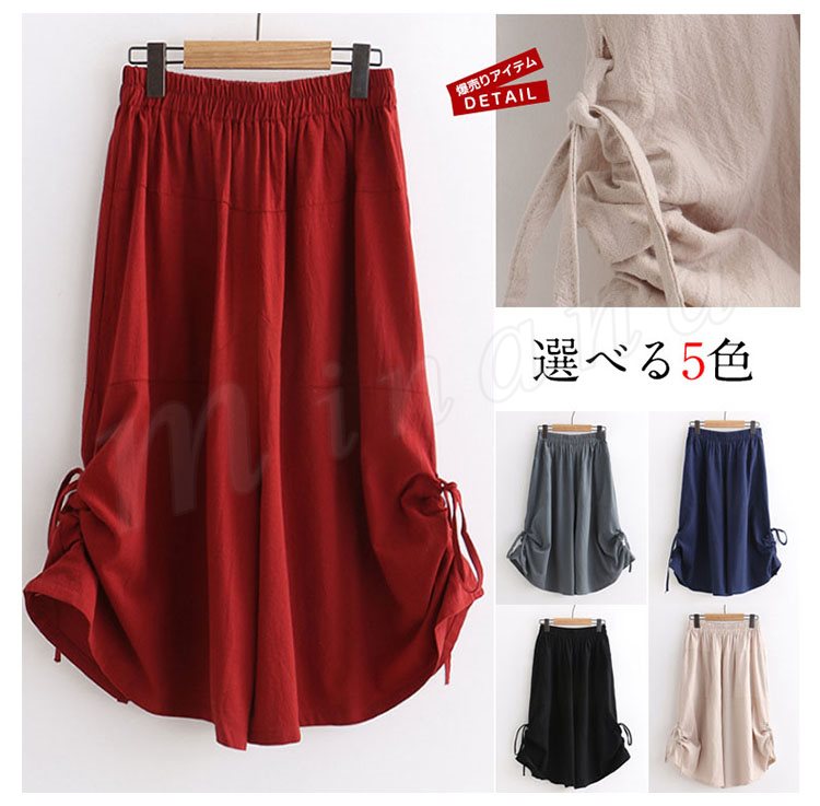 2018秋新作 ガウチョパンツ レディース 無地 綿麻 ワイドパンツ スカンツ 七分丈 クロップドパンツ スカーチョ ボトムス ズボン 春夏秋 おしゃ