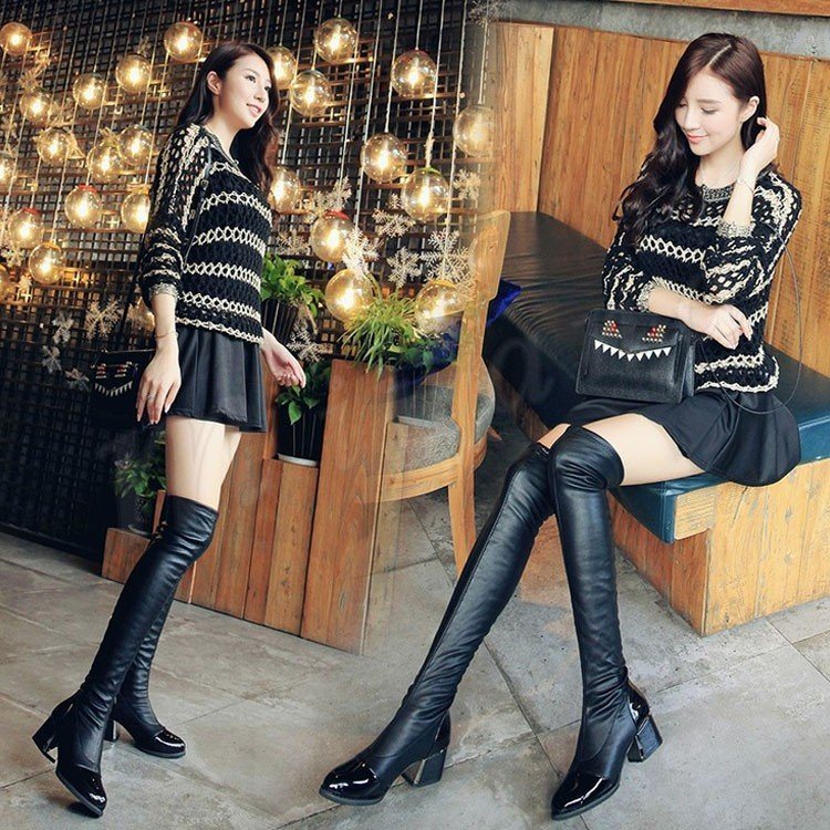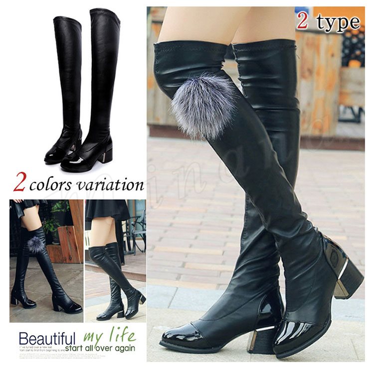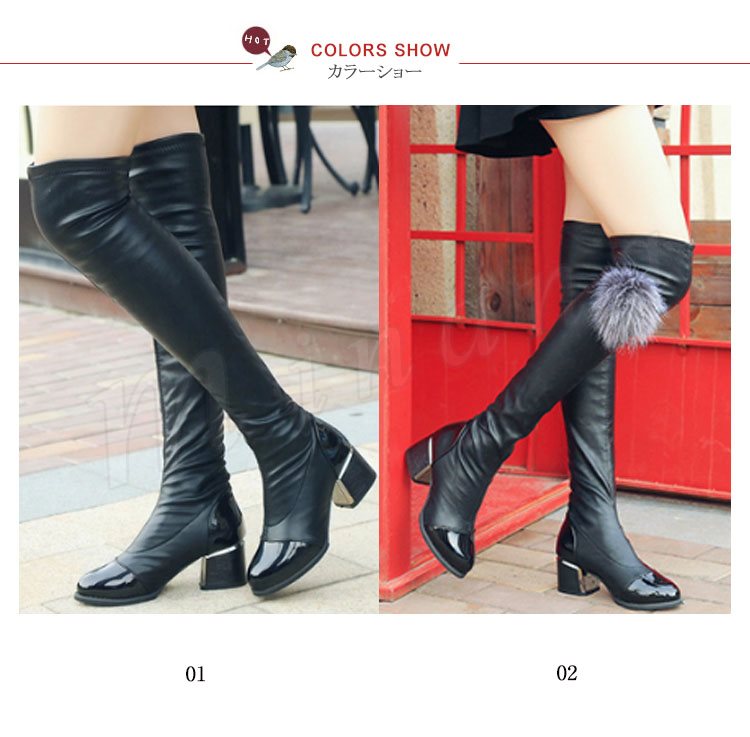 2018秋冬新作/ロングブーツ/レディース/ローヒール/裏起毛/裏ボア付き/ニーハイブーツ/歩きやすい/厚手/防寒/美脚/ファッション/シューズ/靴/
