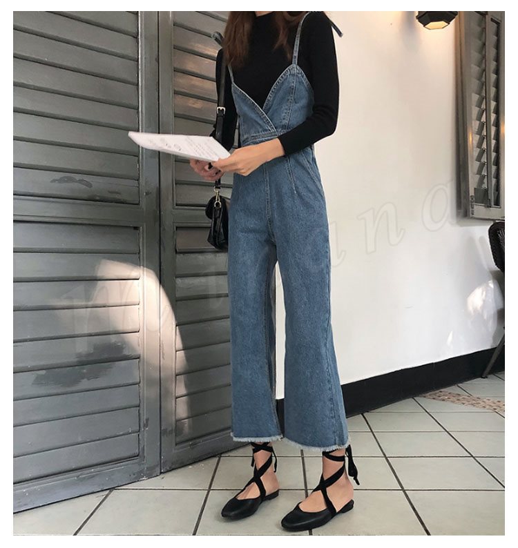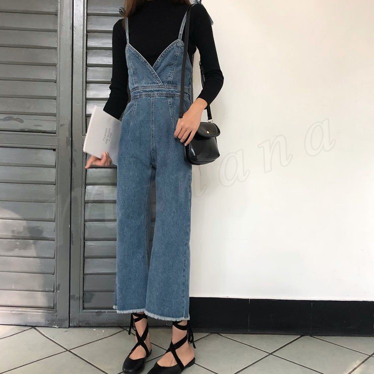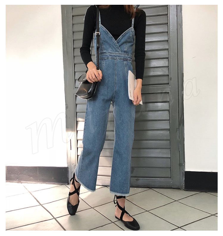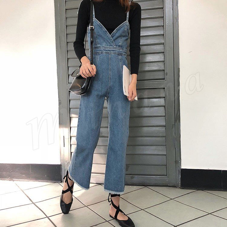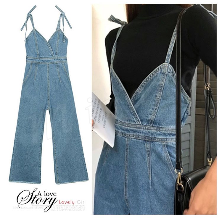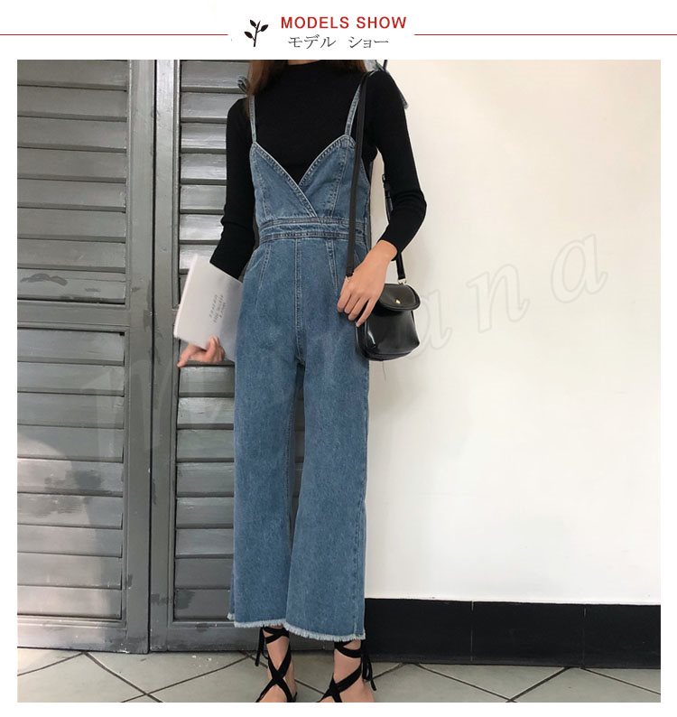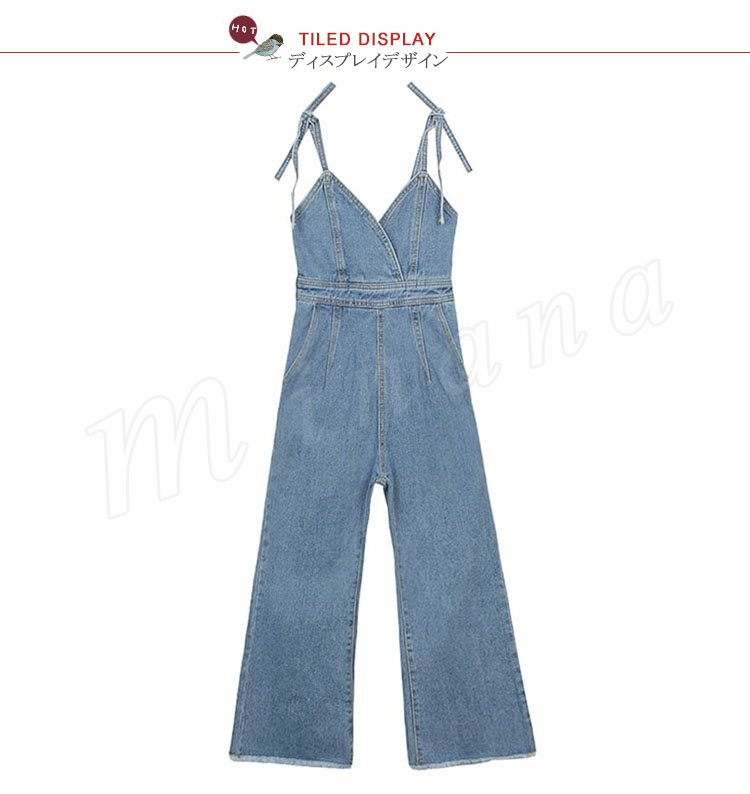 2018新作 サロペット レディース デニム オーバーオール Vネック オールインワン ガウチョパンツ ワイドパンツ スリム カジュアル 春夏秋 おし