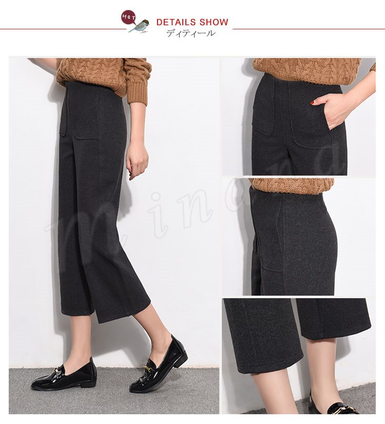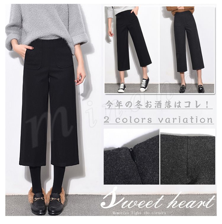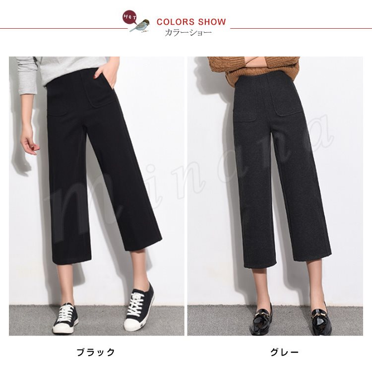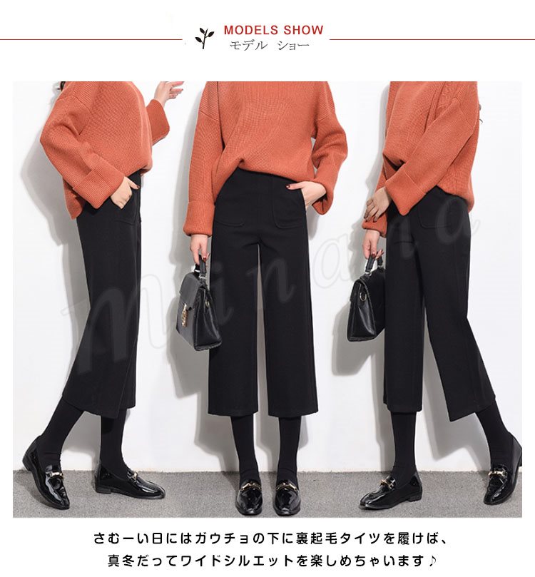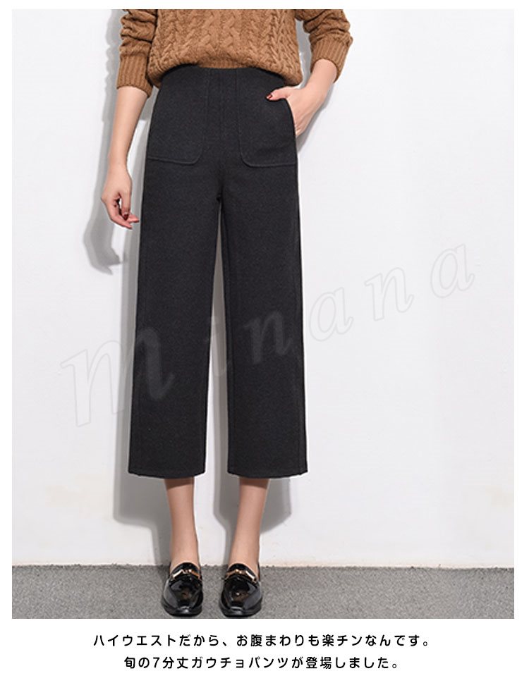 ガウチョパンツ 秋冬 レディース ワイドパンツ 七分丈 ミモレ丈 無地 ガウチョ ストレートパンツ ハイウエスト 暖かい 大人 美脚 厚手