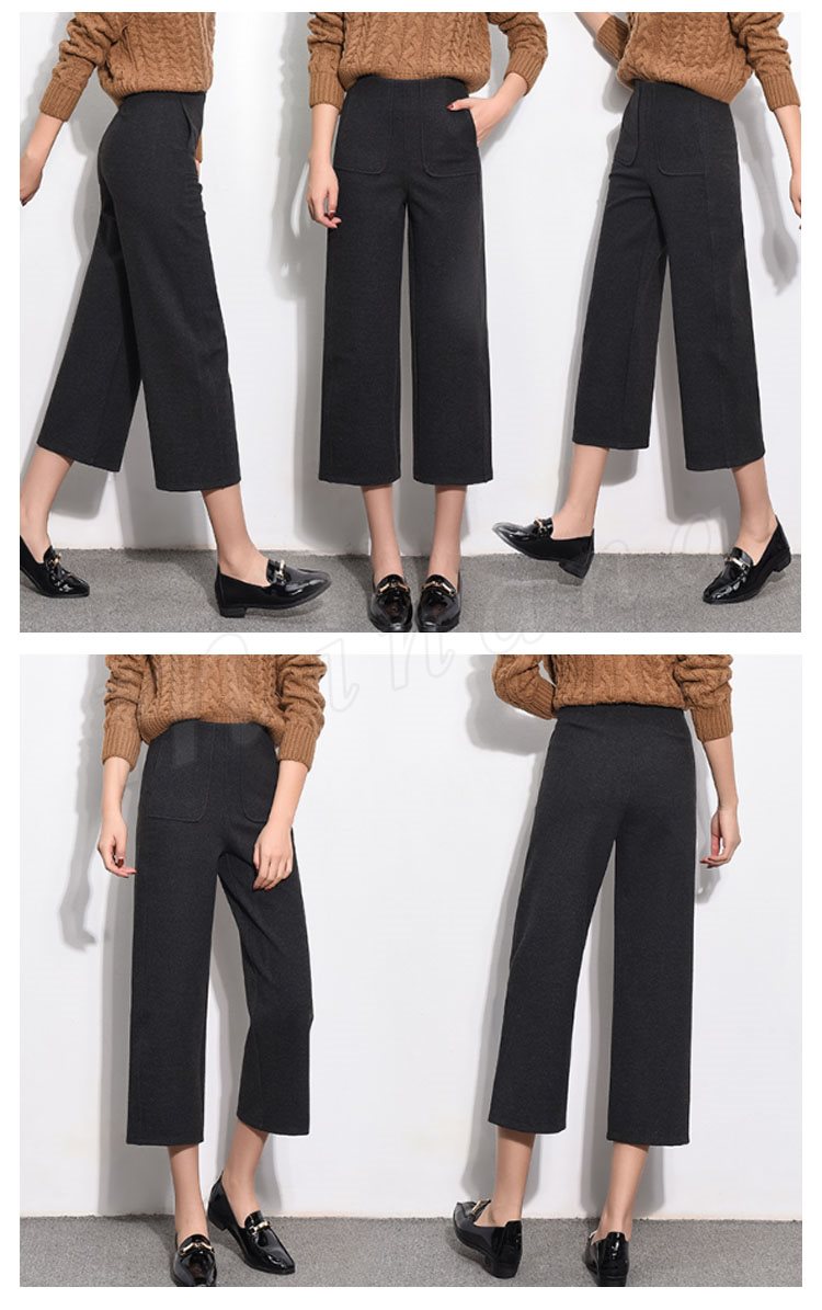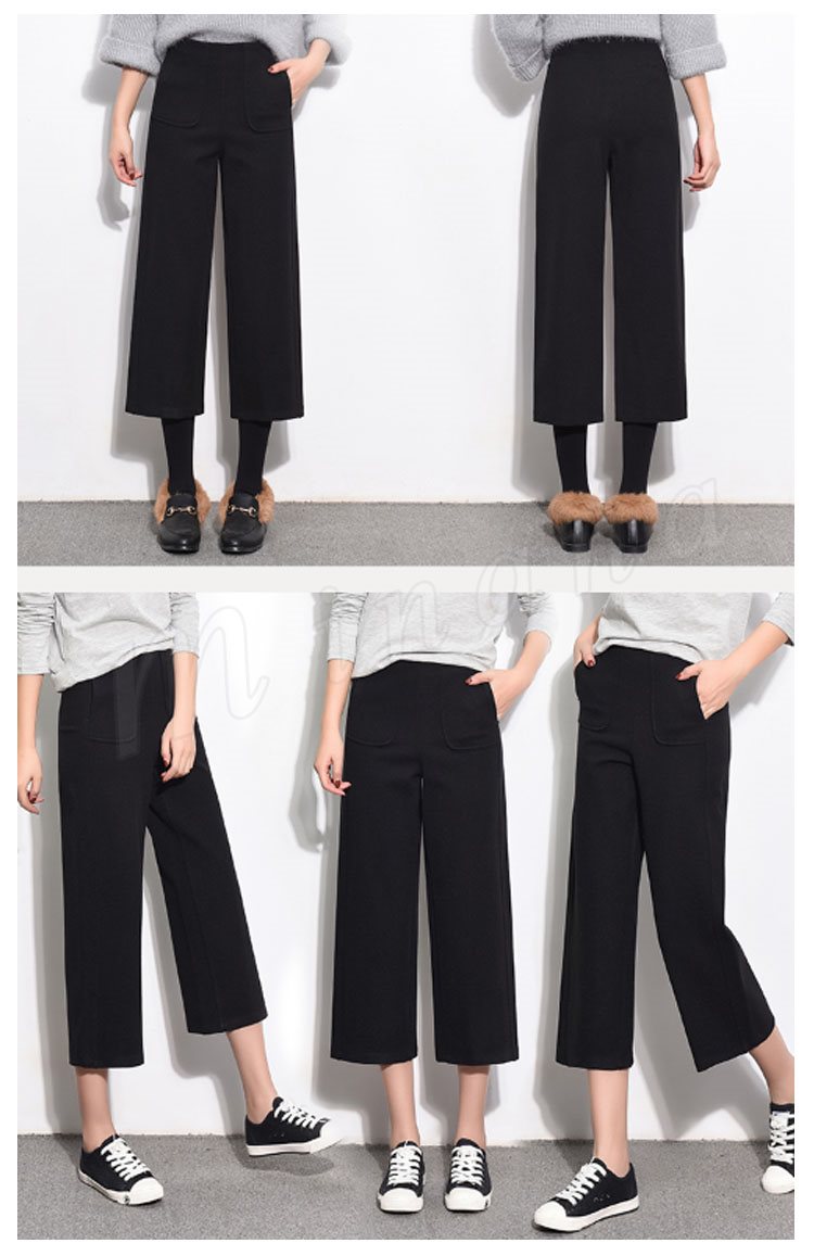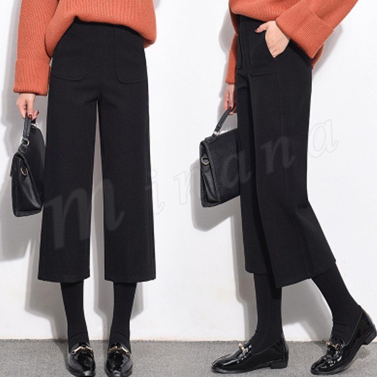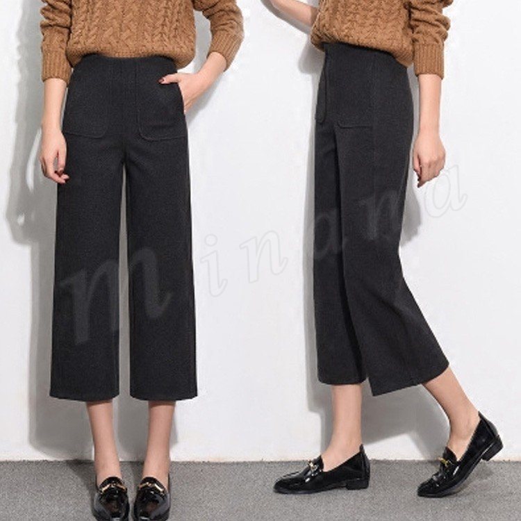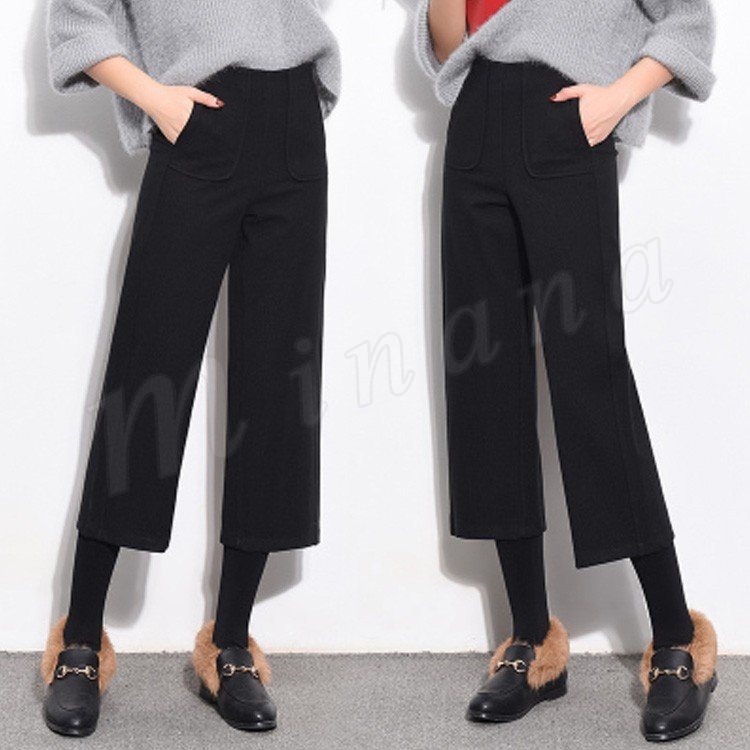 ガウチョパンツ 秋冬 レディース ワイドパンツ 七分丈 ミモレ丈 無地 ガウチョ ストレートパンツ ハイウエスト 暖かい 大人 美脚 厚手