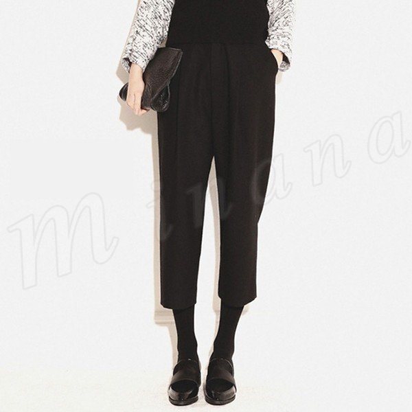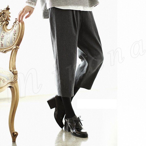 送料無料ハロンパンツ 7分丈 ガウチョパンツ ワイドパンツ ウェストゴム ハイウェスト 無地 ゆったり カジュアル キレイ目 ラシャ レディース パン
