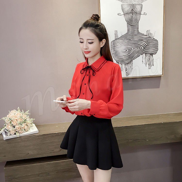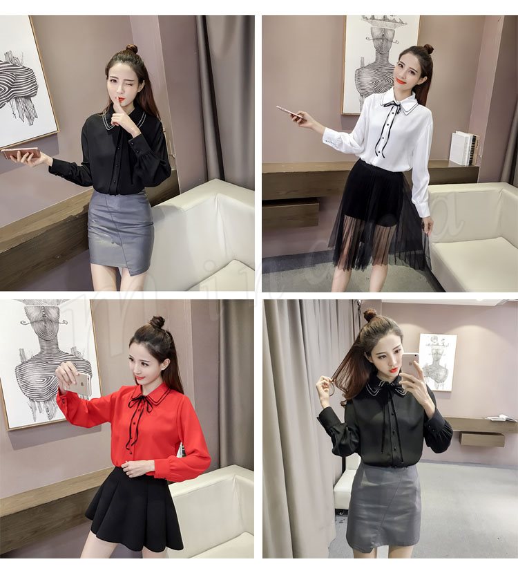 2018春新作/シフォンブラウス/レディース/シャツブラウス/長袖/リボン/ビジネス/カジュアル/着やせ/ファッション/可愛い/春秋/トップス/お