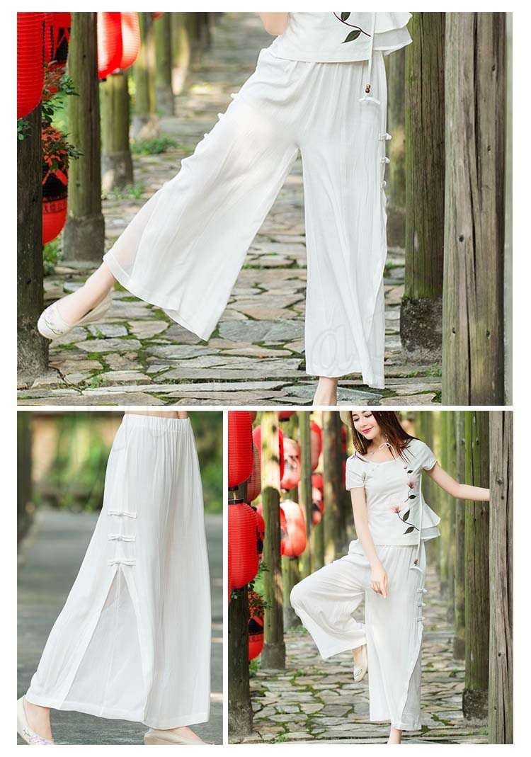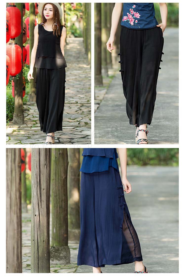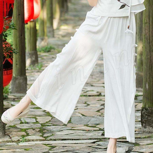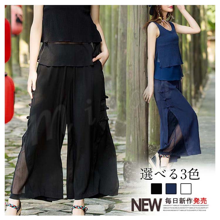 送料無料エスニック風 ワイドパンツ ガウチョパンツ シフォン ミモレ ロング丈 シフォン フレアワイドパンツ レディース フレアパンツ 美脚 美尻
