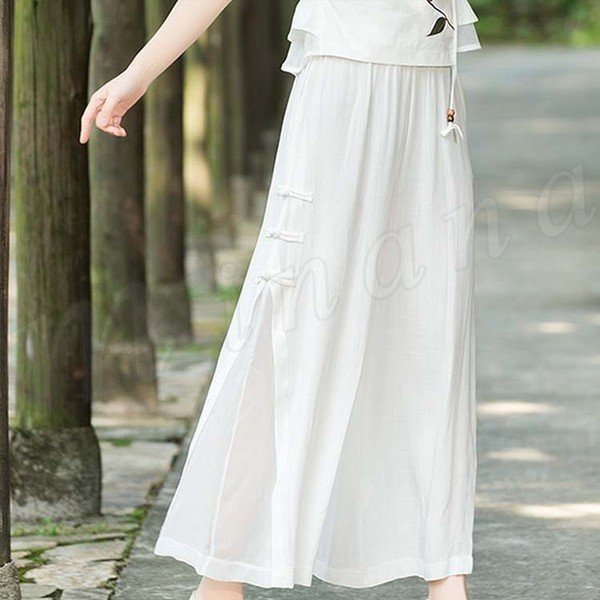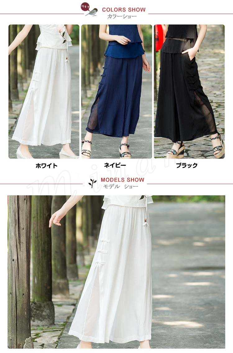 エスニック風 ワイドパンツ ガウチョパンツ シフォン ミモレ ロング丈 シフォン フレアワイドパンツ レディース フレアパンツ 美脚 美尻