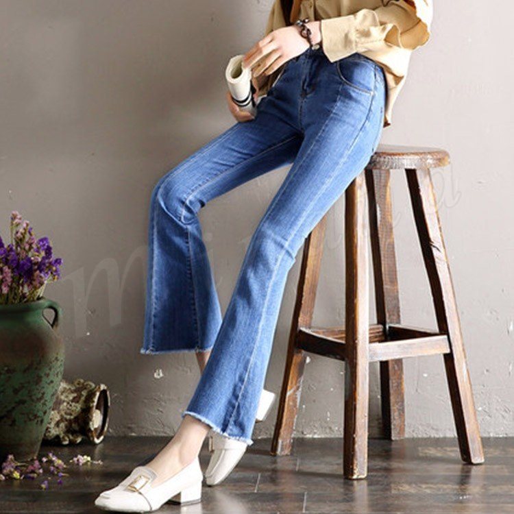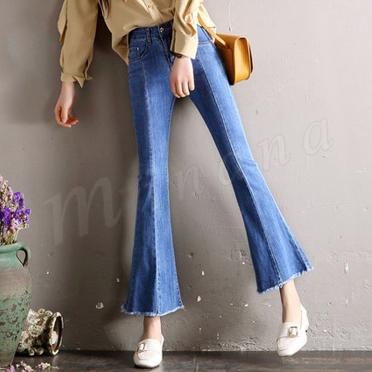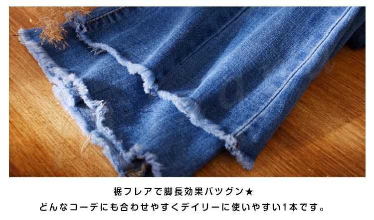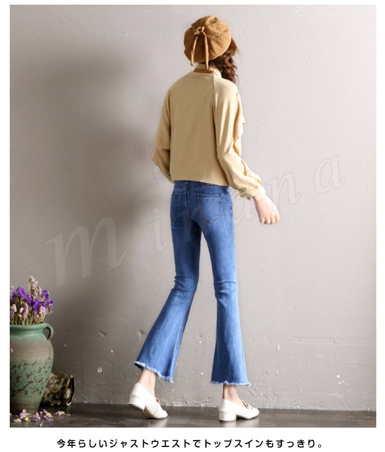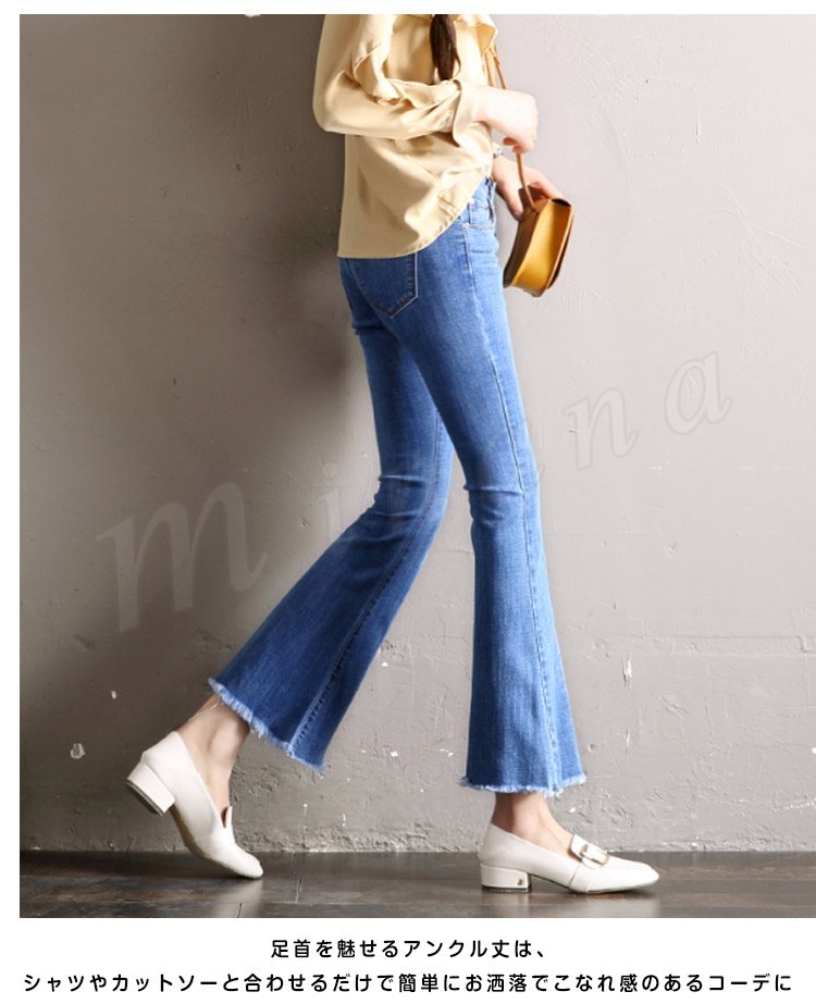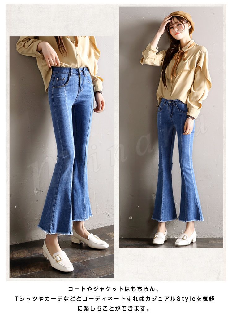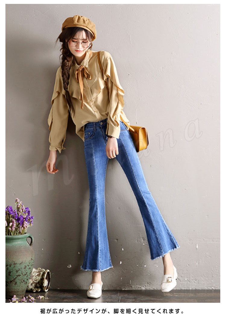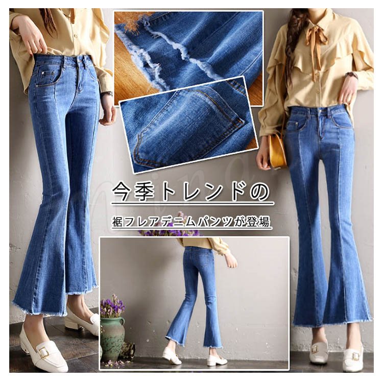 9分丈 パンツ デニムパンツ 裾フレア パンツ デニムパンツ ジーンズ デニム ジーパン ボトムス デイリー 美脚 パンツ レディース