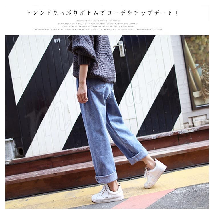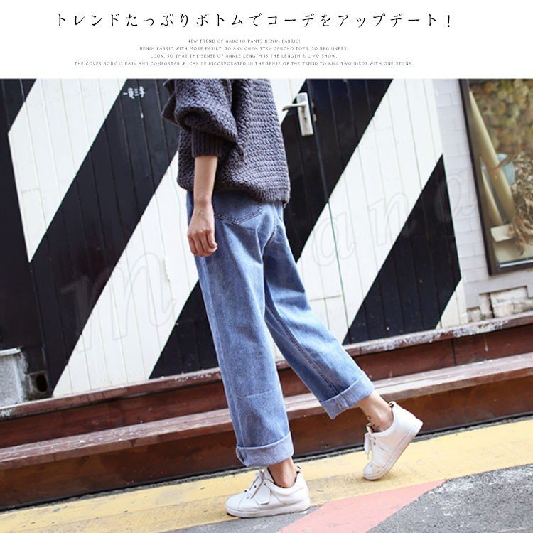 | トレンドのガウチョパンツにデニム生地タイプが新登場! デニム生地なのでより着回ししやすく、どんなトップスとも相性抜群なので、ガウチョ初心者にもおすすめ! 踝が見える丈感なので、もたつかずスッキリ見せてくれる長さです。 体型カバーもできて楽な着心地ですが、トレンド感も取り入れられる一石二鳥のアイテムです。 | |