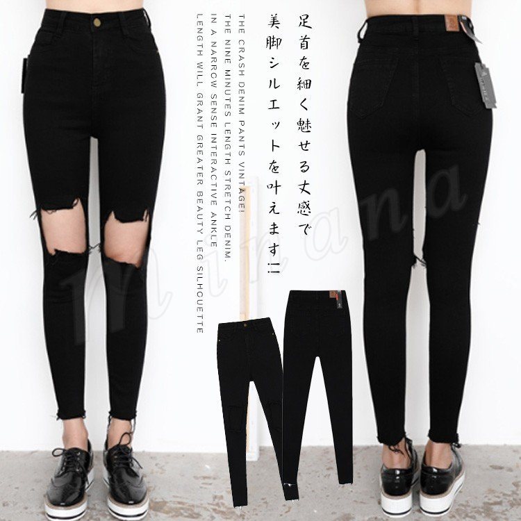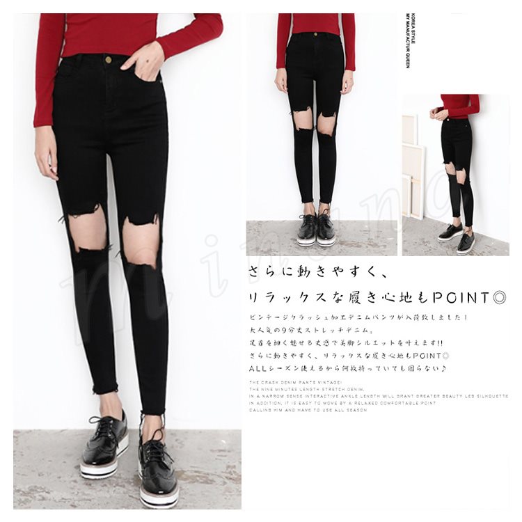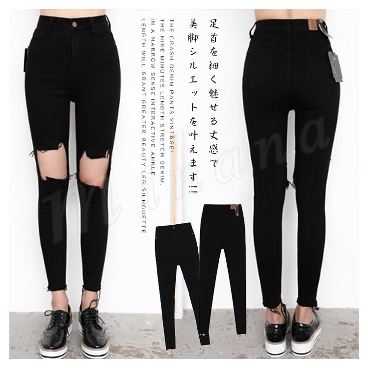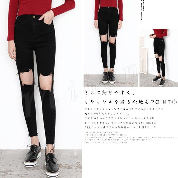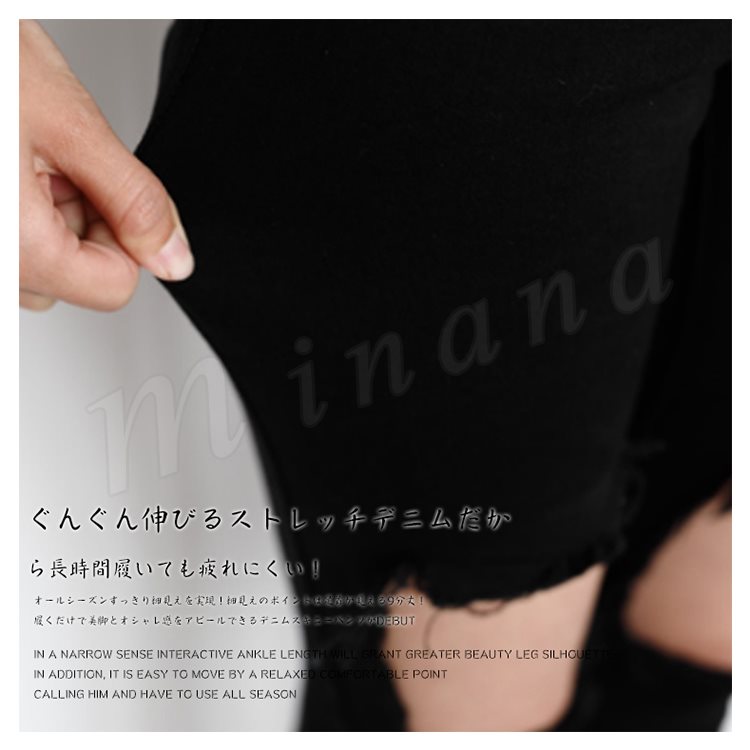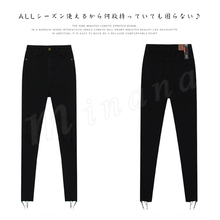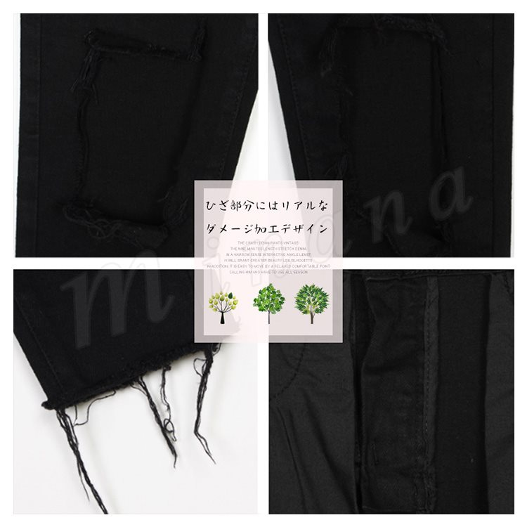 デニムパンツ 9分丈 ダメージ加工 ストレッチ デニム パンツ スキニーパンツ ジーンズ ウォッシュ加工 デニム テーパードパンツ 細身 レデ