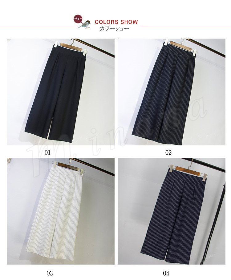 2018新作 ガウチョパンツ ワイドパンツ レディース ストライブ柄 無地 スカンツ スカーチョ ストレート ビジネス 通勤 ボトムス ズボン カ
