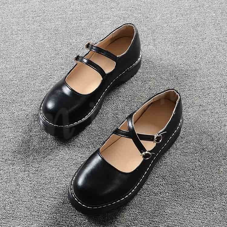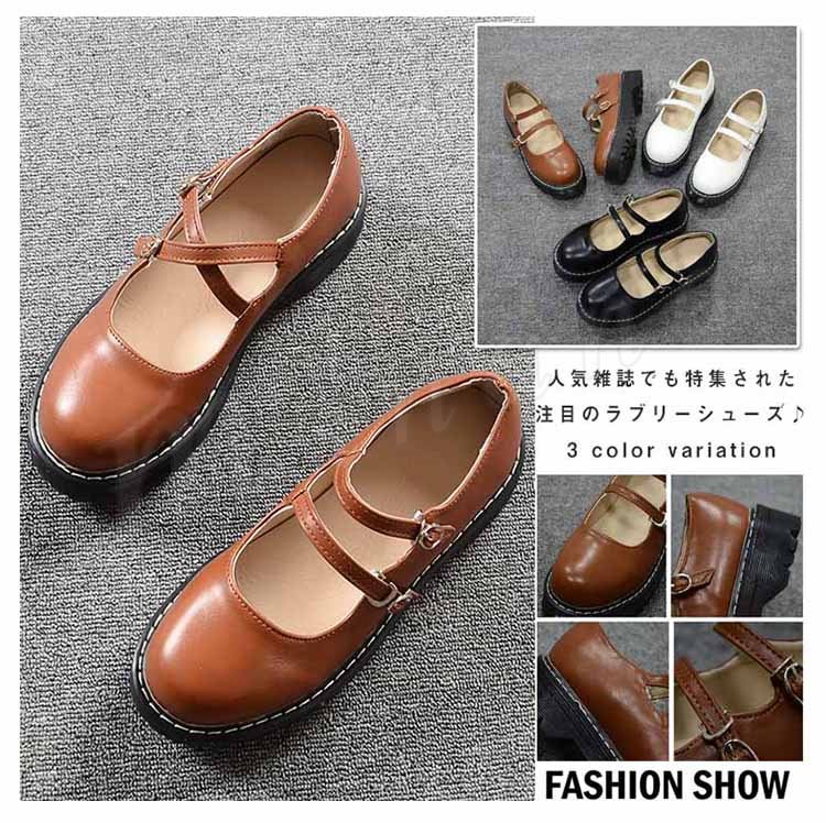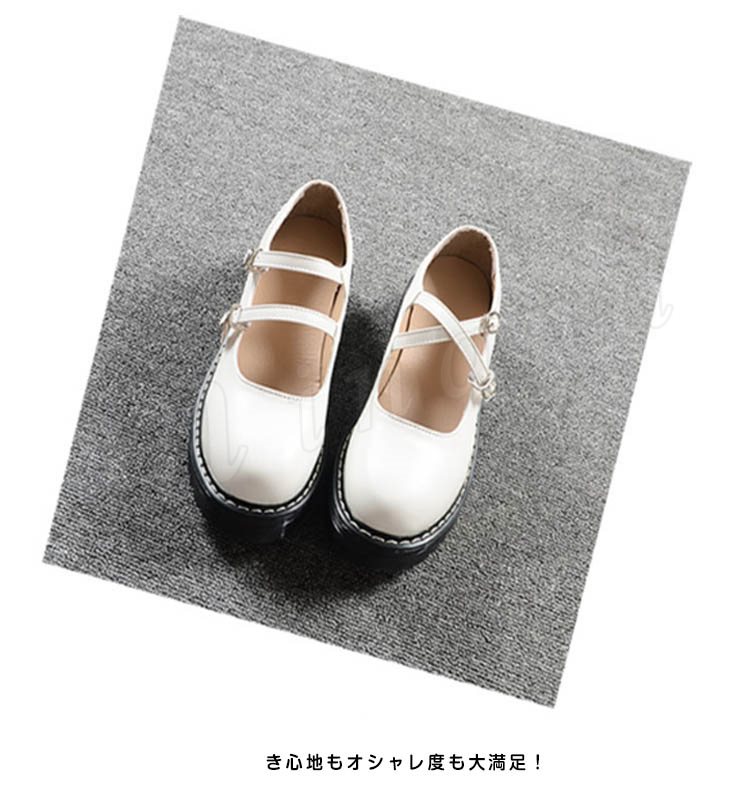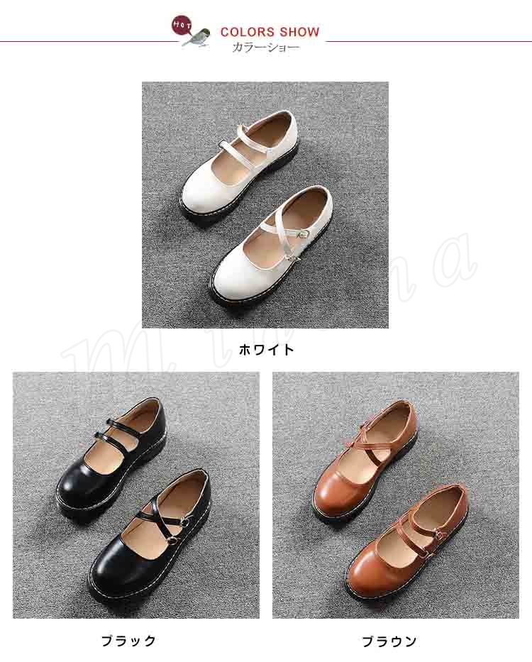 甲ベルト シューズ レザーシューズ お嬢様風 シューズ ロリータ ロリータシューズ ロリータ靴 メイド靴 フラットシューズ レースアップ レディース