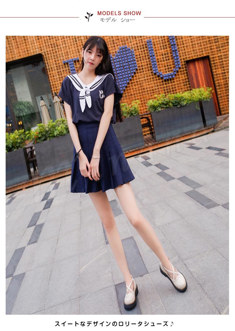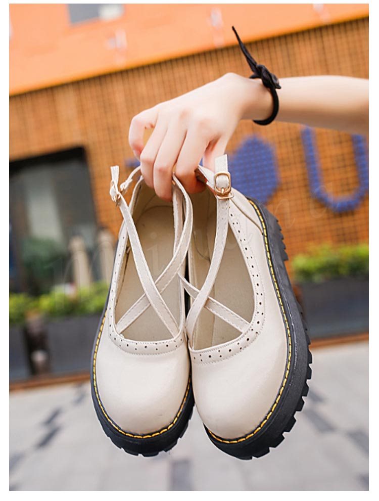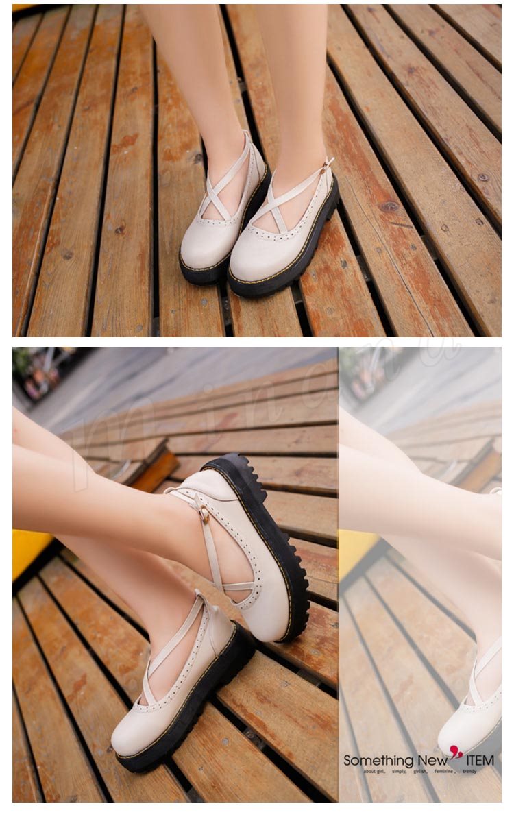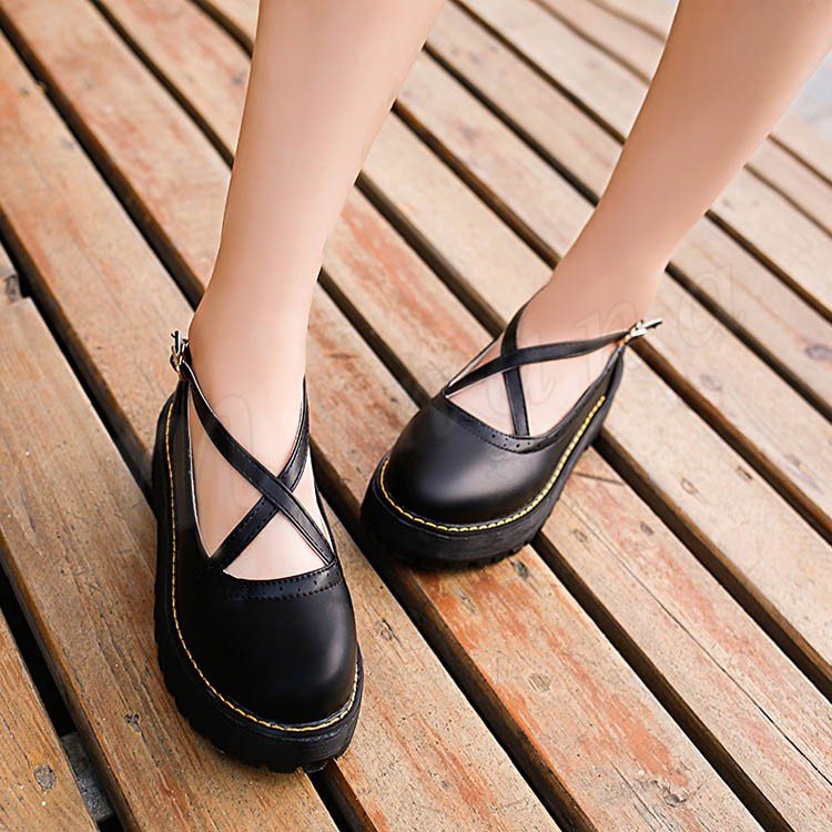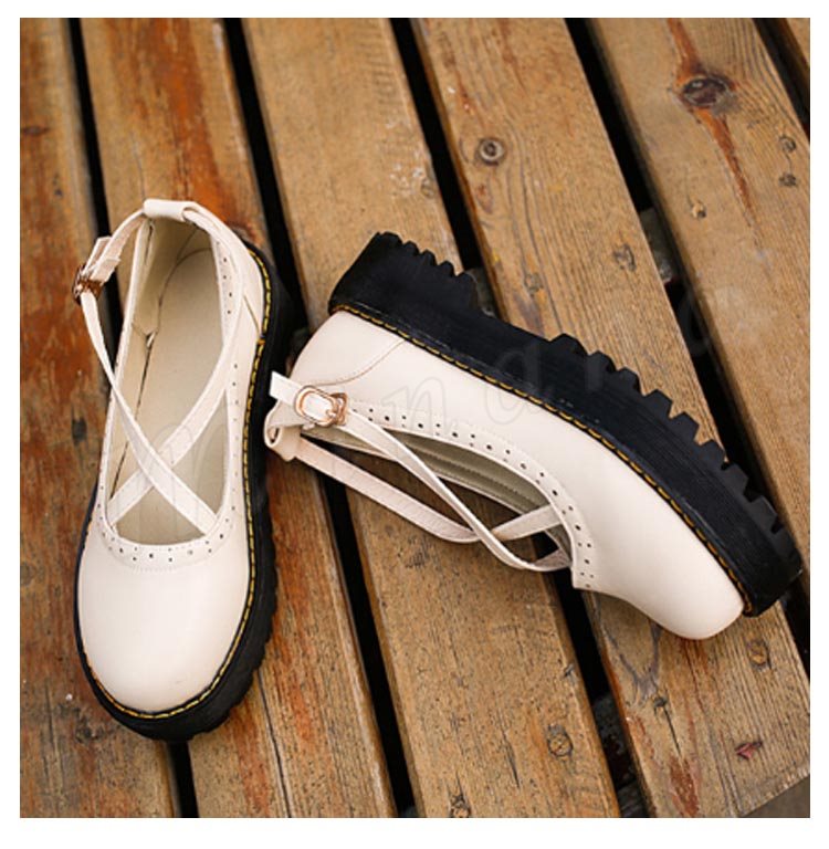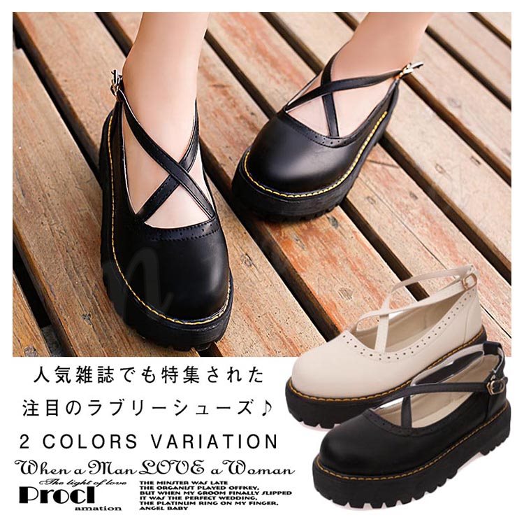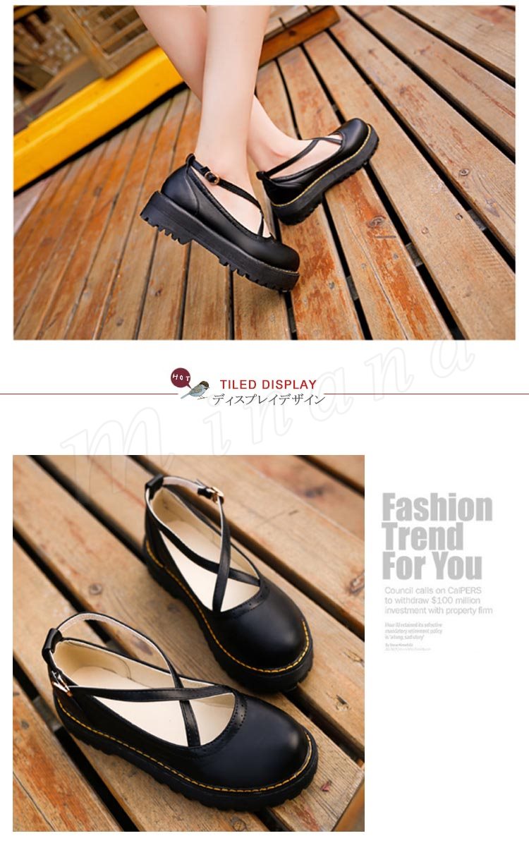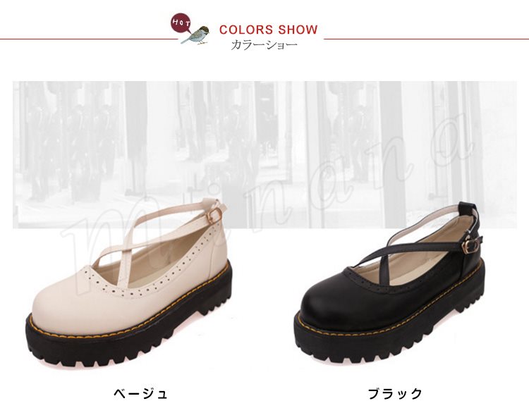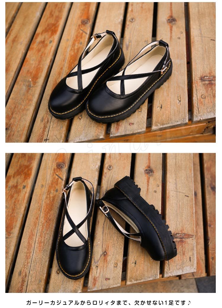 ロリータシューズ ロリータ靴 厚底 甲ベルト シューズ レザーシューズ お嬢様風 シューズ ロリータ メイド靴 フラットシューズ レースアップ レディ