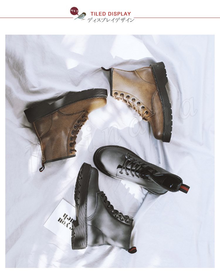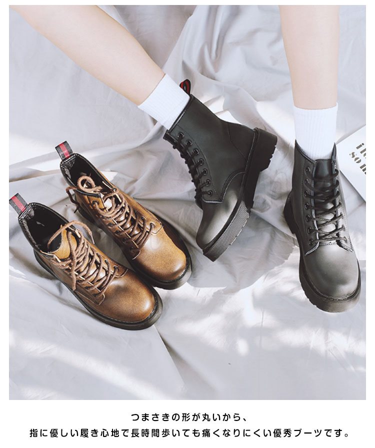 | 昨年から大HIT中のトレンドレースアップブーツ! スカートに合わせてガーリーにも、パンツに合わせてマニッシュにもなる、何に合わせてもおしゃれに決まるアイテムです。 つまさきの形が丸いから、指に優しい履き心地で長時間歩いても痛くなりにくい優秀ブーツです。 いつものコーデにも取り入れやすいんです! | |
