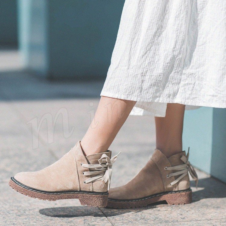 バック レースアップ ショートブーツ スエード レースアップブーツ マニッシュ ブーツ シューズ 靴 ハイカット シューズ 歩きやすい ローヒール 美