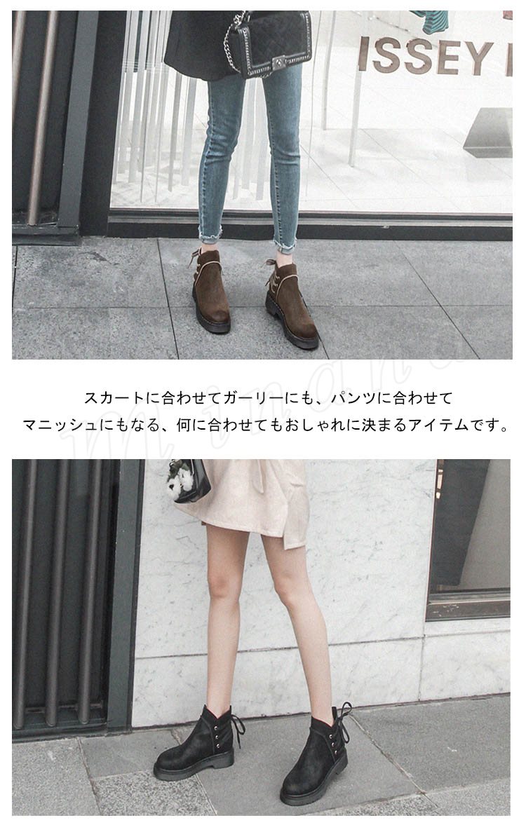 レースアップブーツ バック レースアップ ショートブーツ スエード マニッシュ ブーツ シューズ 靴 ハイカット シューズ 歩きやすい ローヒール 美