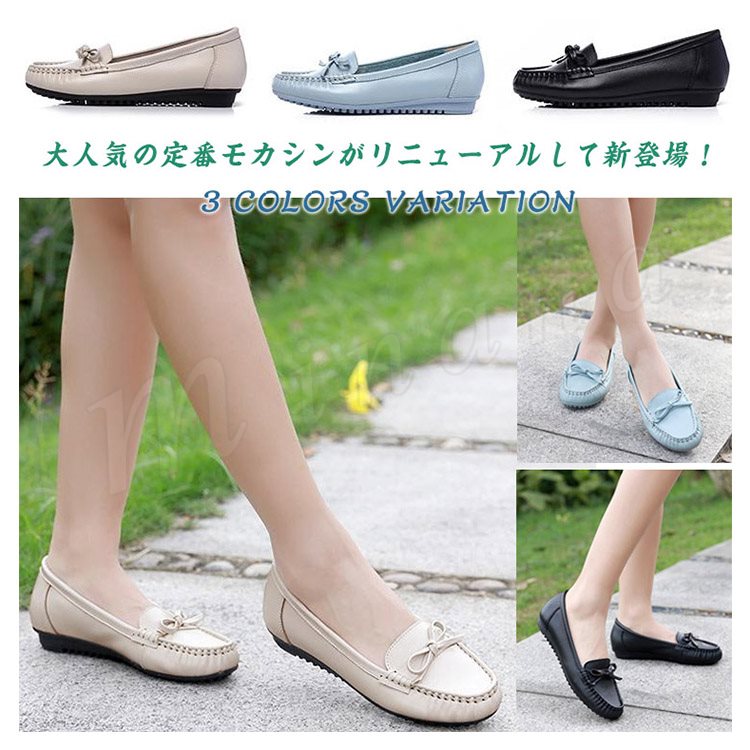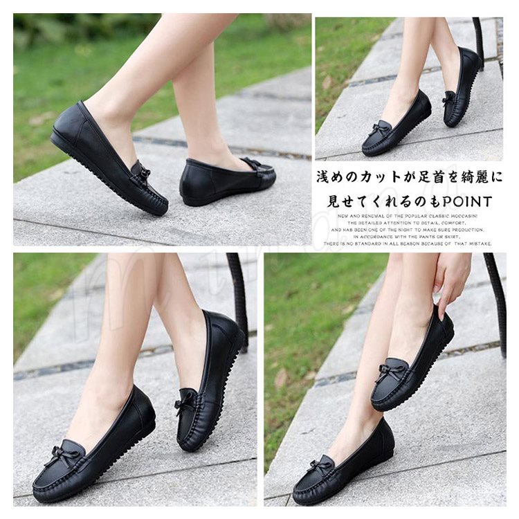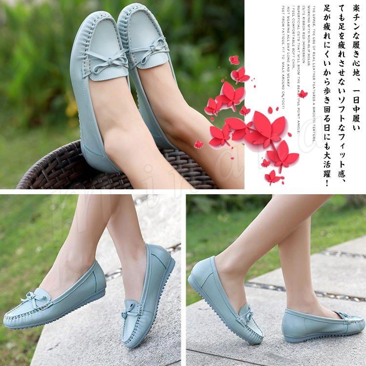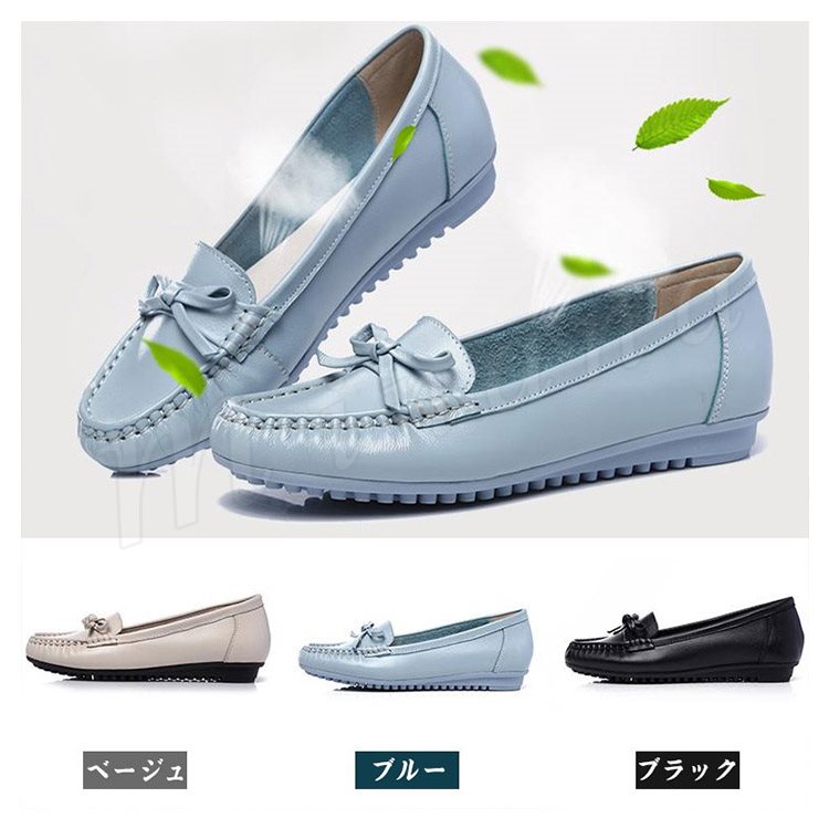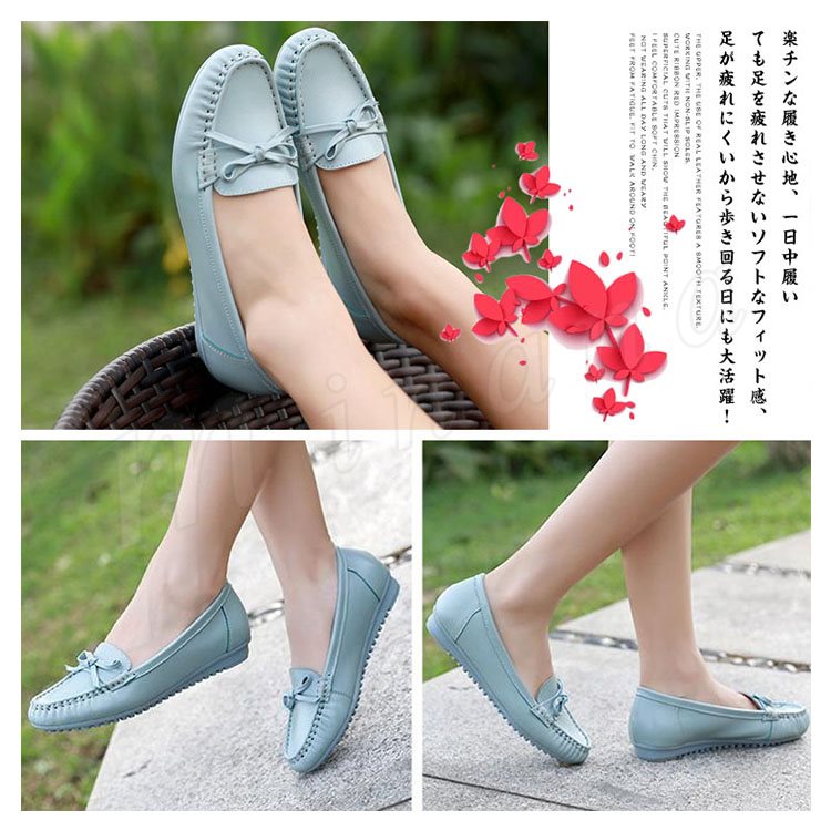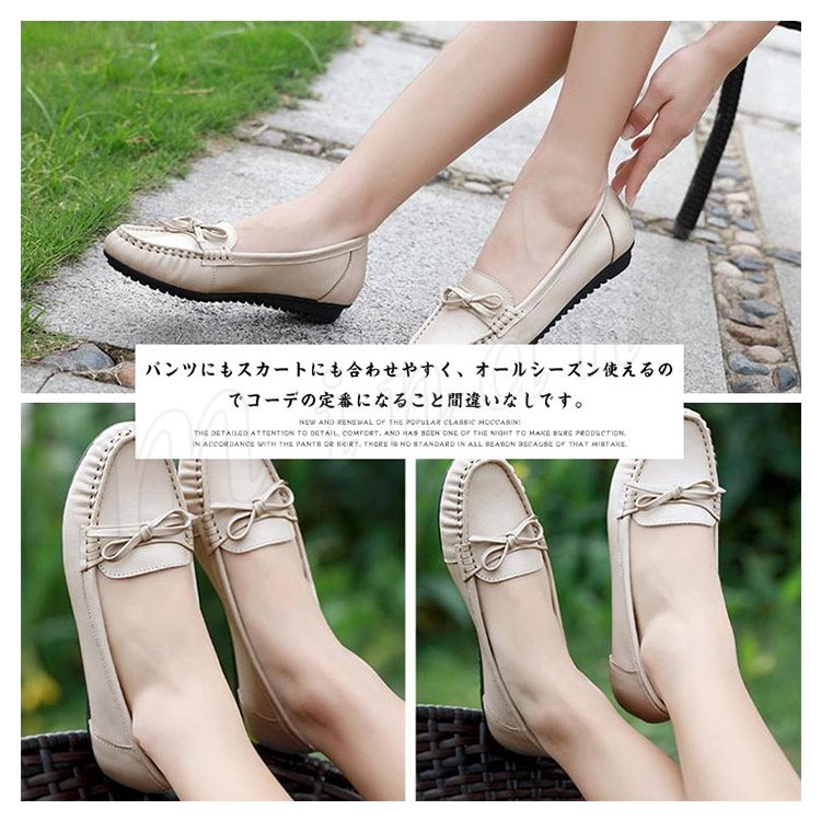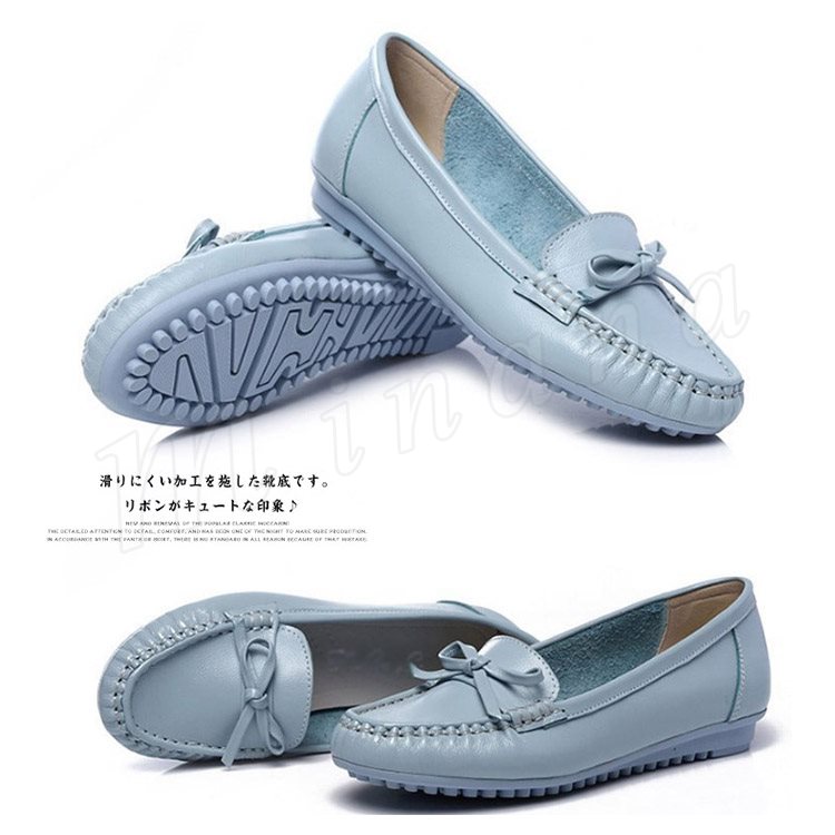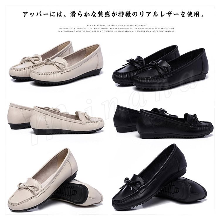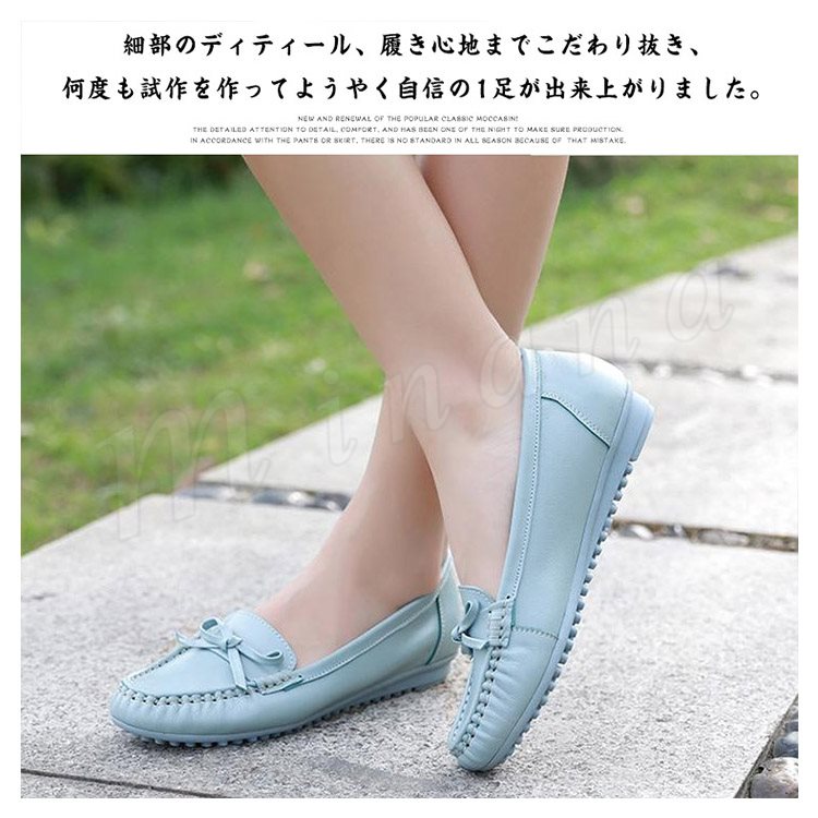 リアルレザー モカシンシューズ 牛革 ぺたんこシューズ リボン モカシン フラット シューズ レディース モカシン シューズ スリッポンシューズ 靴