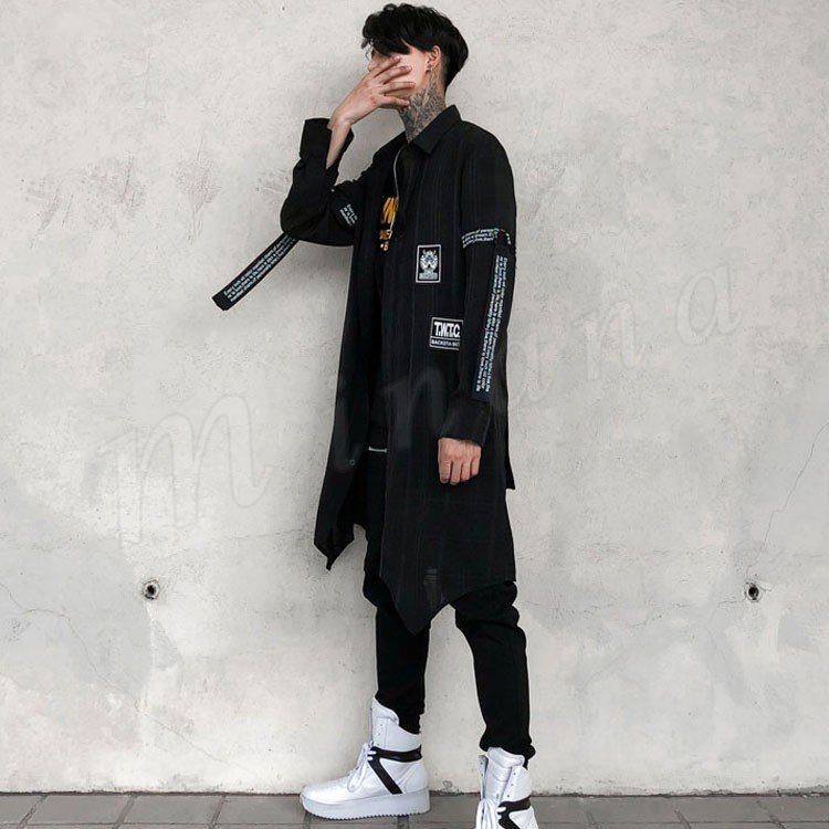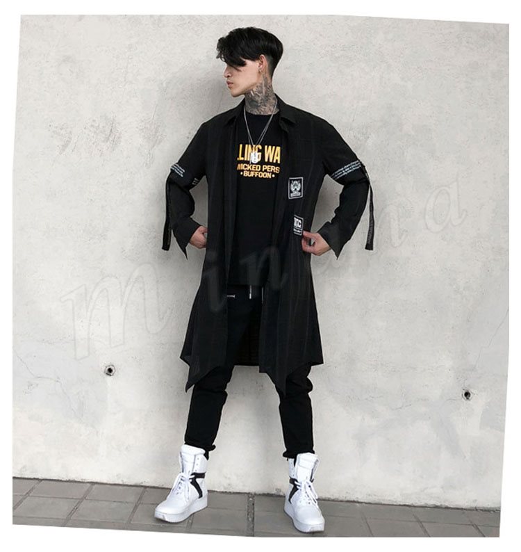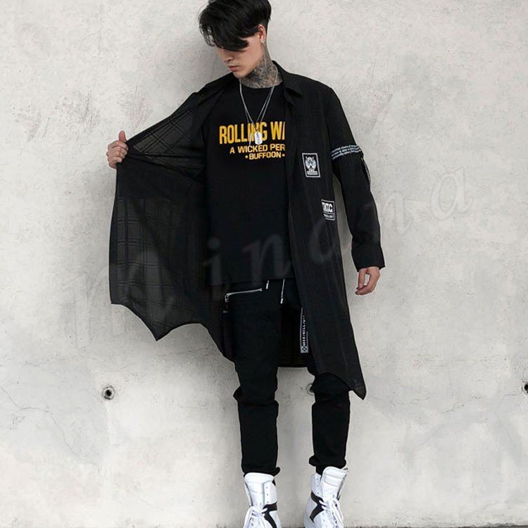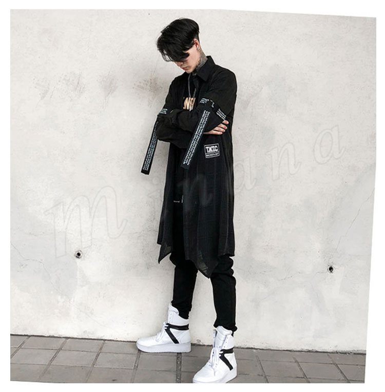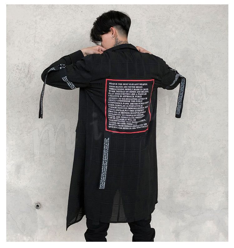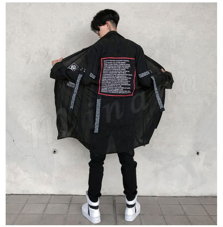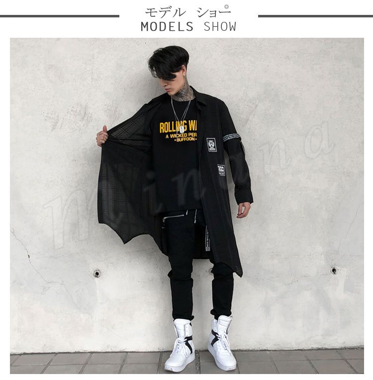 2018秋新作 ロングシャツ 長袖 メンズ 薄手 チェック柄 プリント カジュアルシャツ シャツコート ロング丈 かっこいい トップス 春夏秋 おしゃ