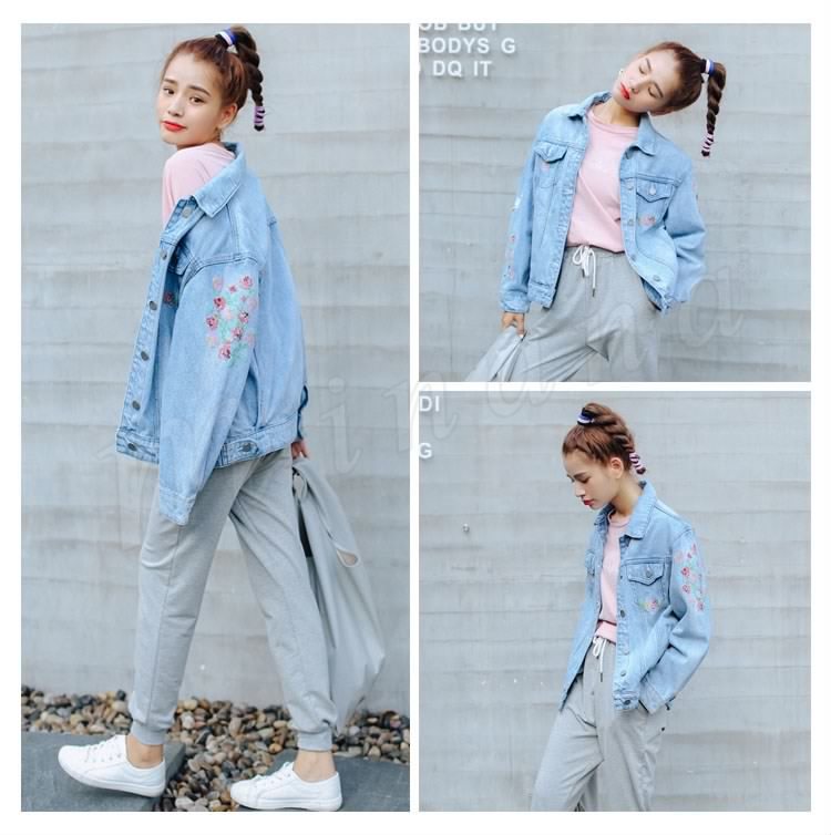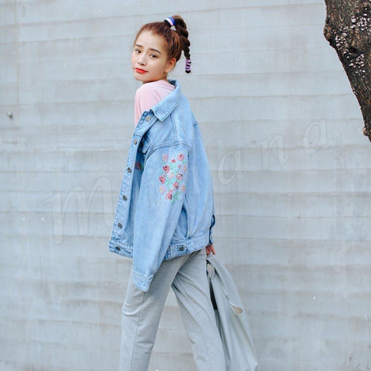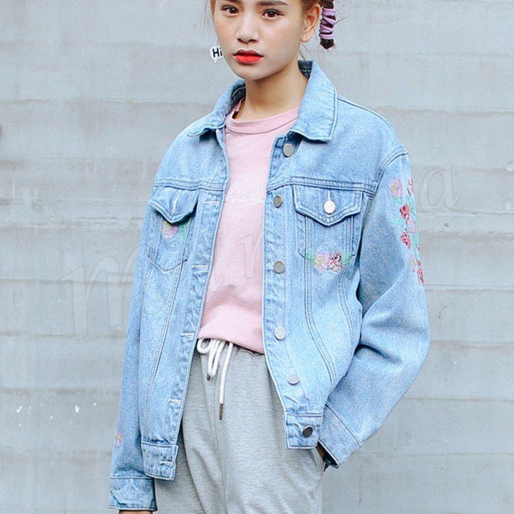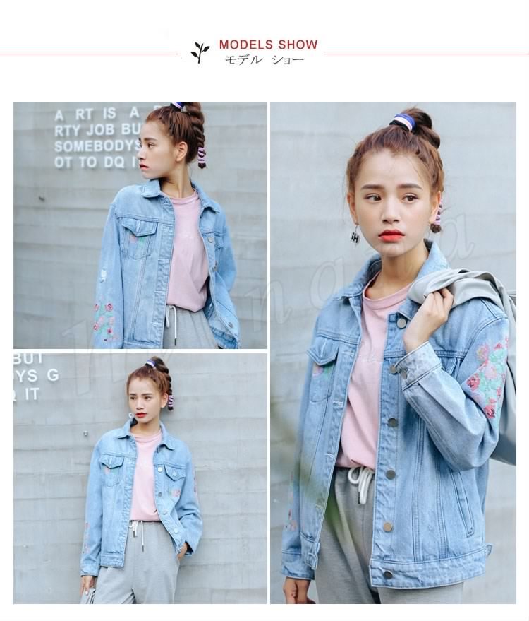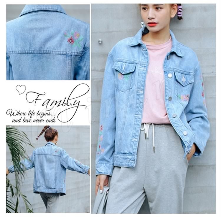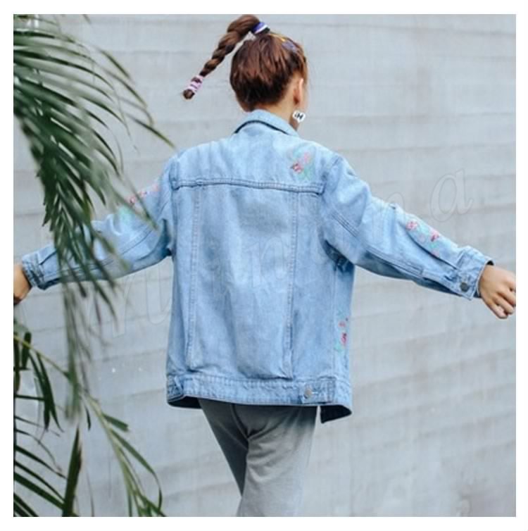 花刺繍 デニムジャケット ショート丈 ライトアウター spring autumn ジージャン 秋 レディース