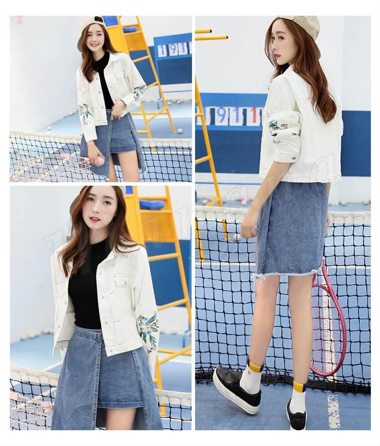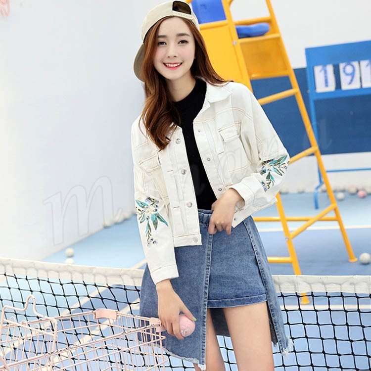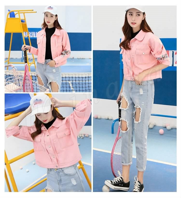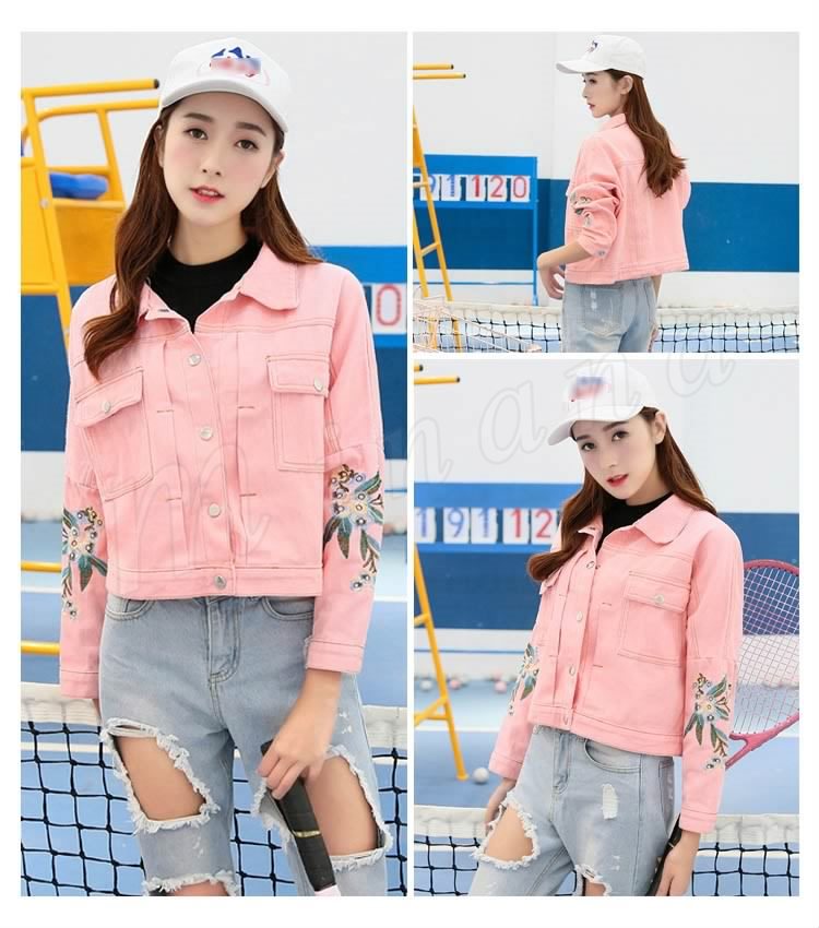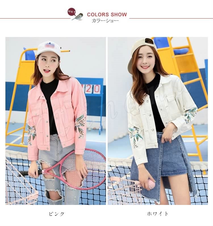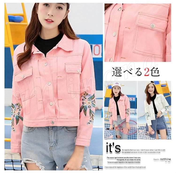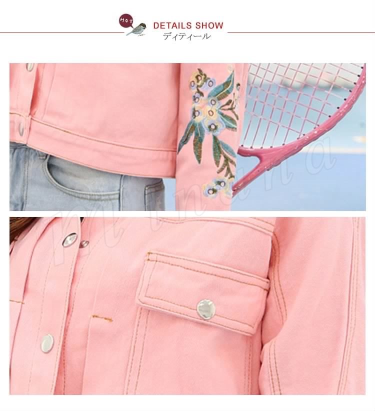 デニムジャケット 花刺繍 ショート丈 ライトアウター 着痩せ感 jacket ピンク ホワイト 春秋 spring autumn ゆったり感