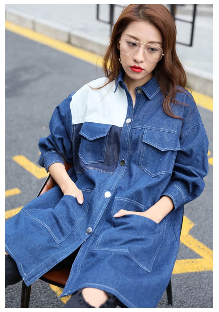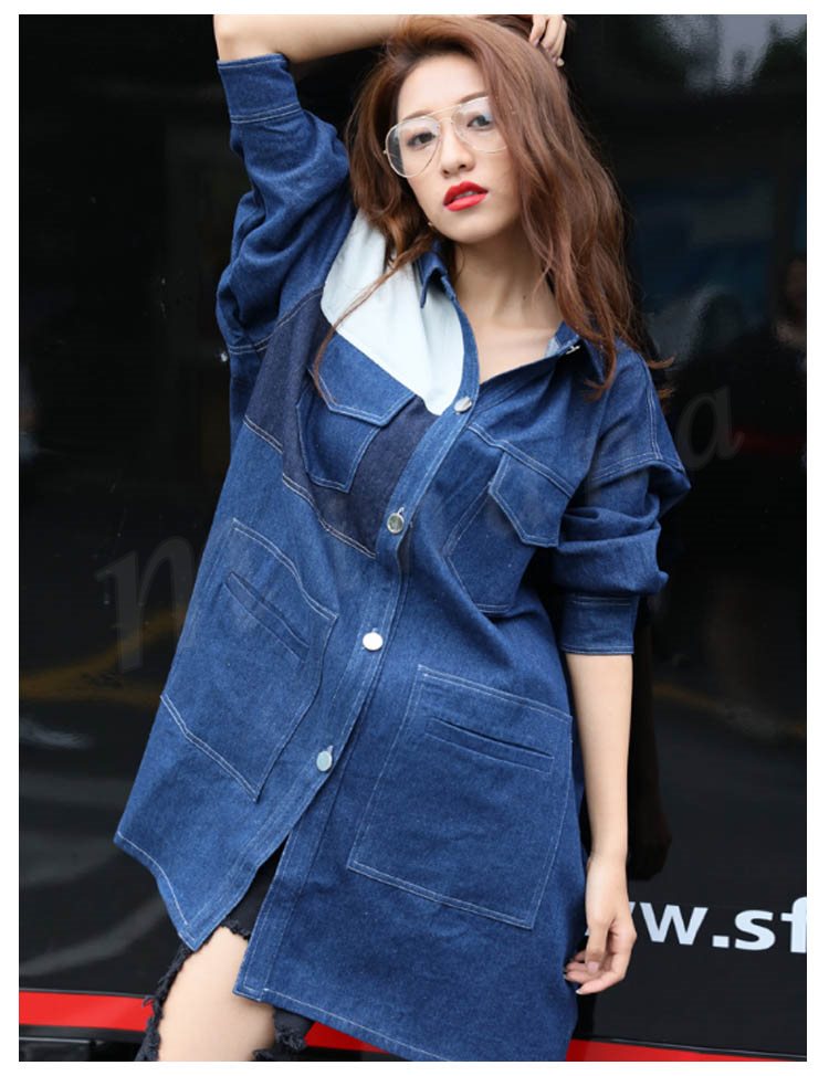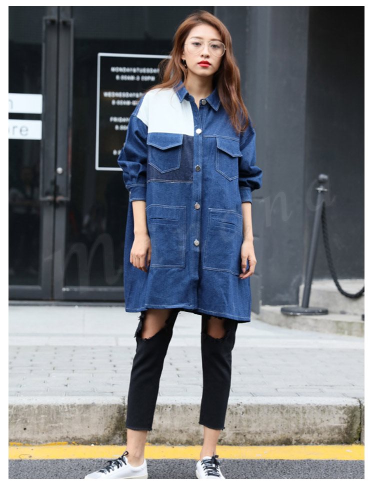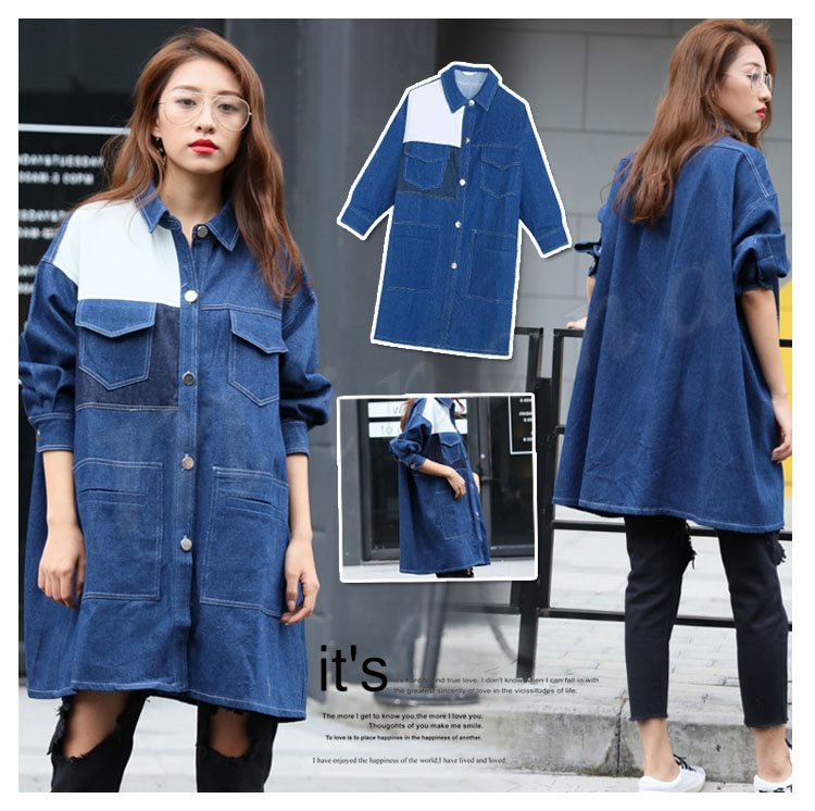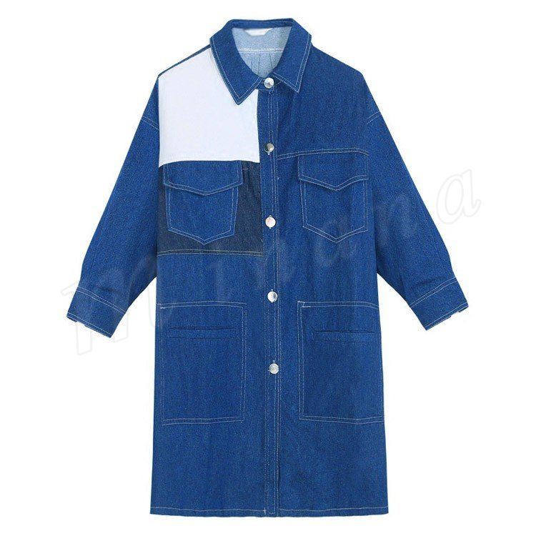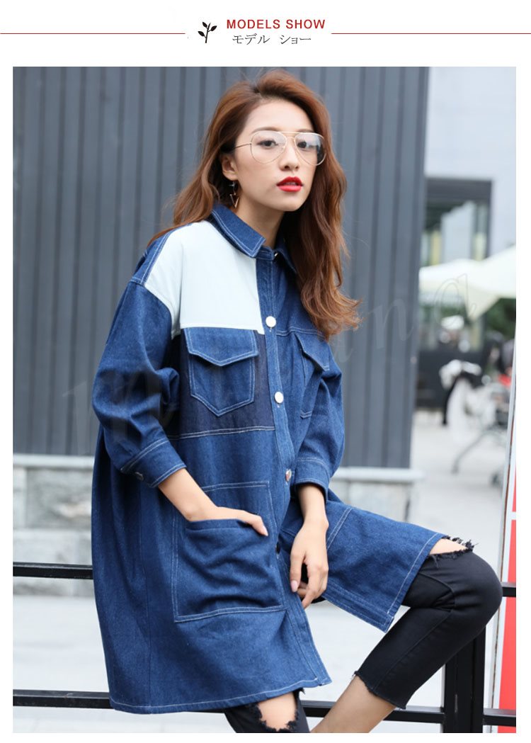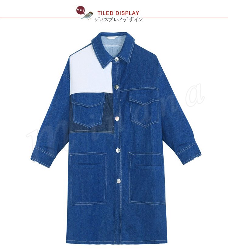 トレンチコート デニムコート スプリングコート ロング丈 デニムジャケット レディース デニムシャツ 長袖 デニムトレンチコート 無地 大