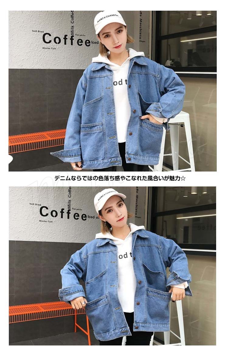 デニムジャケット レディース gジャン 大きめ ゆったり ドロップショルダー ヴィンテージ加工 春 アウター ショート丈 ジージャン トップス