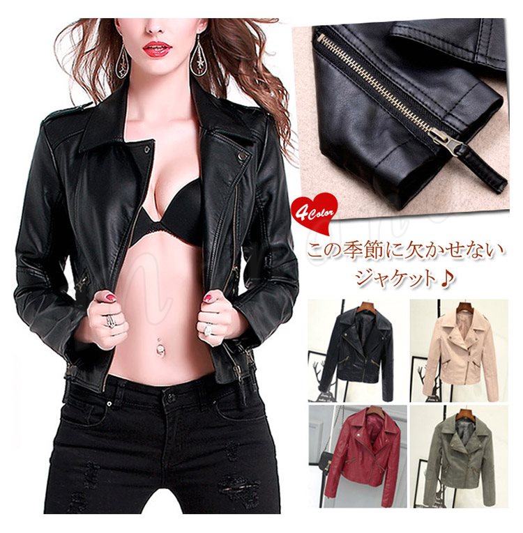 レザージャケット ライダース コート 春秋物 ジップ ショート丈 レディース 欧米風 大きいサイズ アウターウエア 長袖 トップス 上着 黒