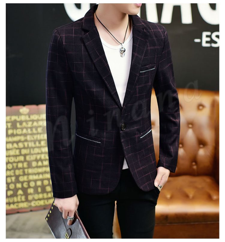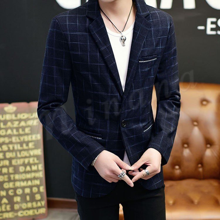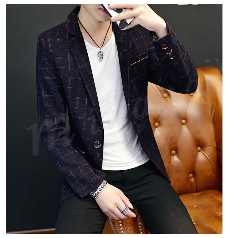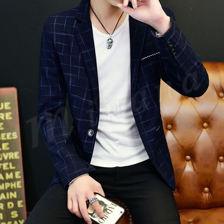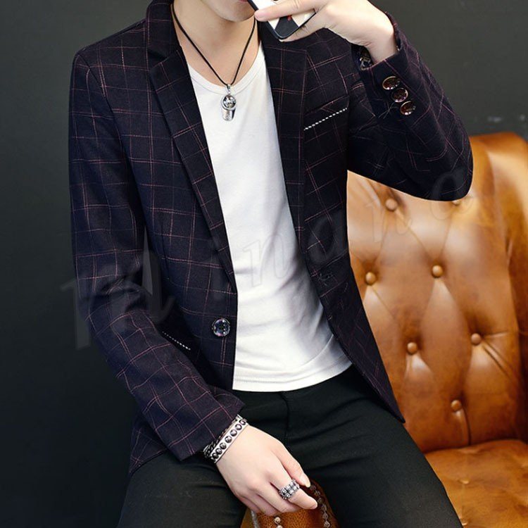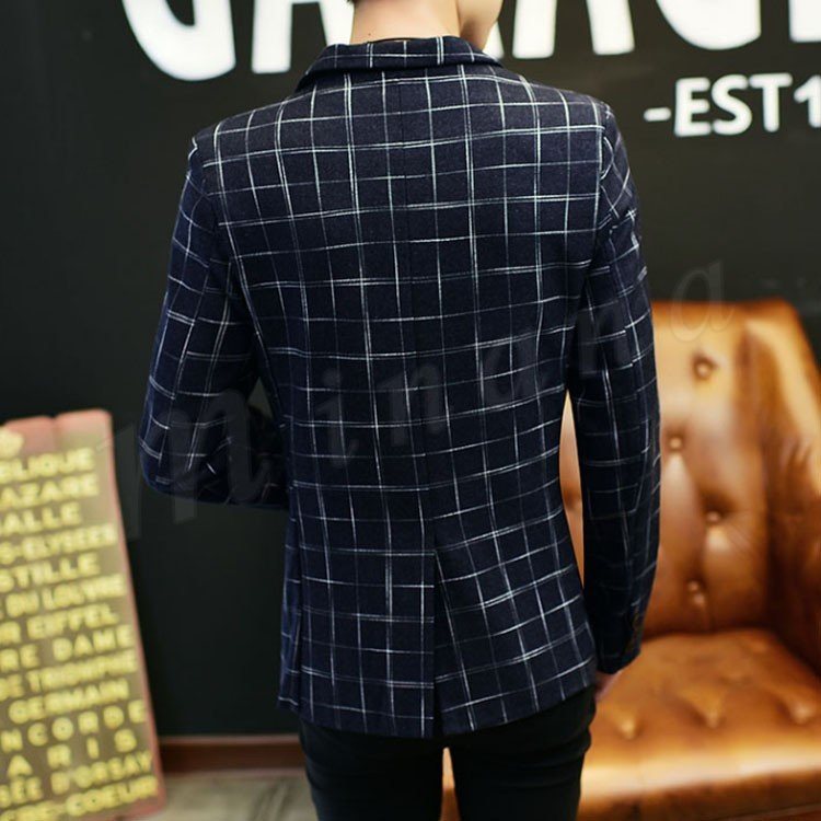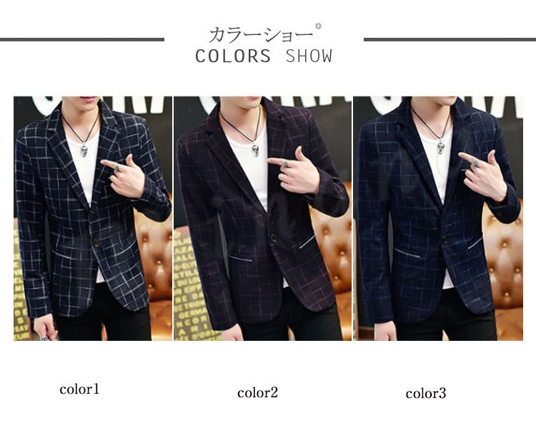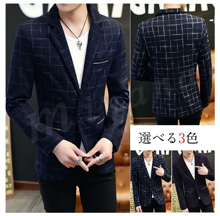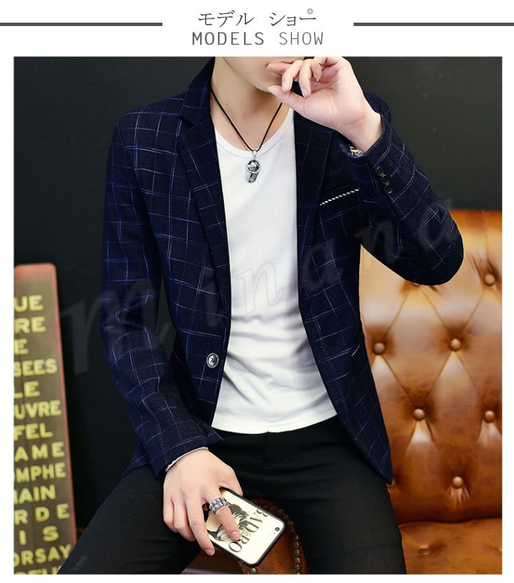 2018春新作/メンズスーツ/カジュアルスーツ/チェック柄/スリム/ファッション/スプリングコート/春秋/おしゃれ/テーラードジャケット/就活ビジネス