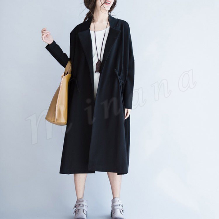 トレンチコート アウター レディース 秋冬 コート 膝丈 ロング 2WAY 黒 ブラック ベージュ 通勤 OL 大きいサイズ マタニティ オー