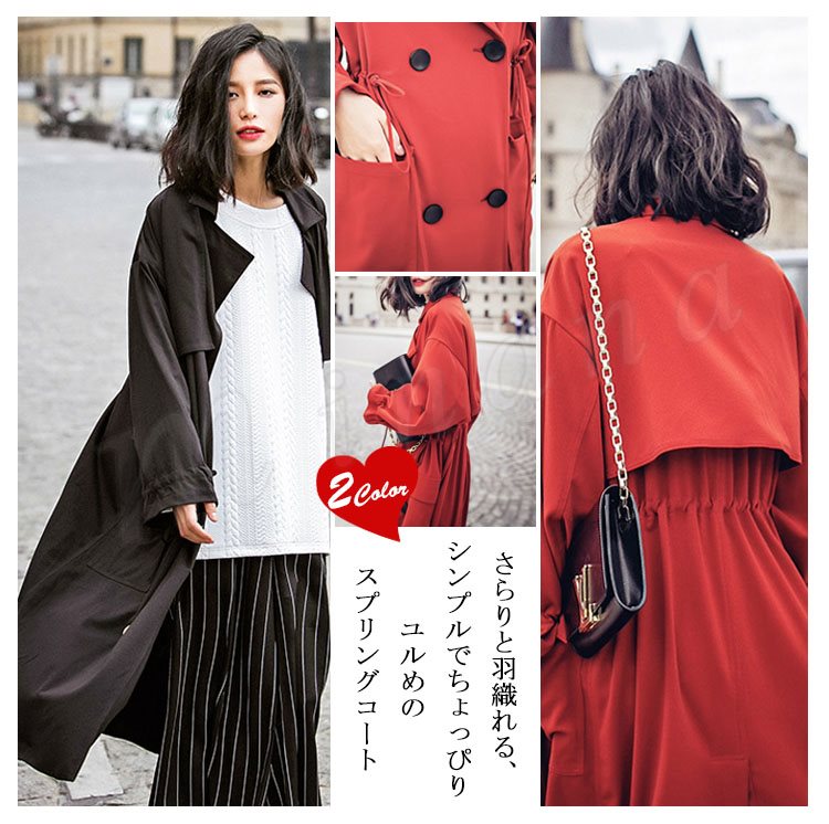 アウター スプリングコート ジャケット レディース トレンチコート レディース アウター ロング コート トレンチ 長袖 羽織 コート 膝丈