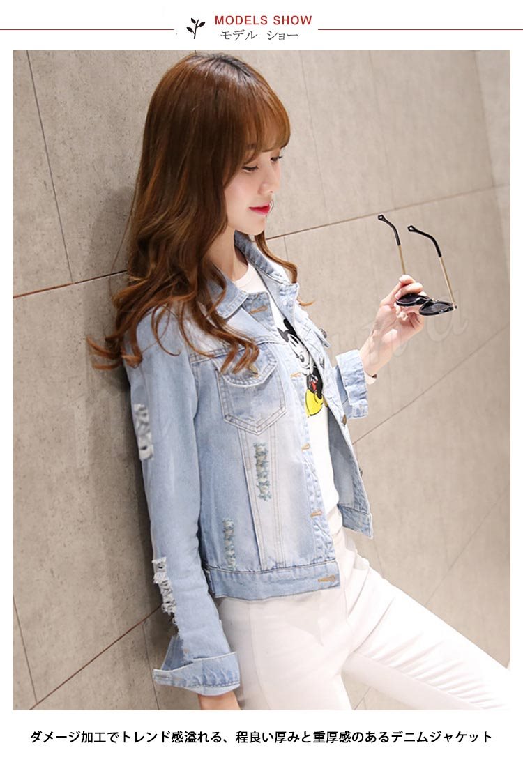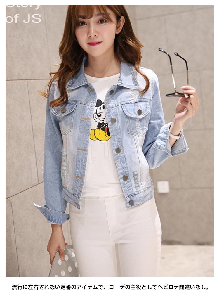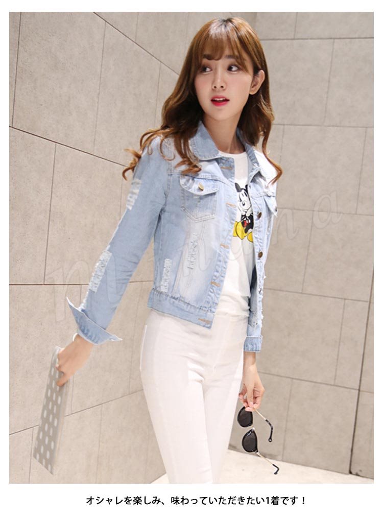 デニムジャケット ジージャン Gジャン レディース ブルゾン ダメージ加工 ショート丈 長袖 ブレザー アウター 羽織 無地 新作