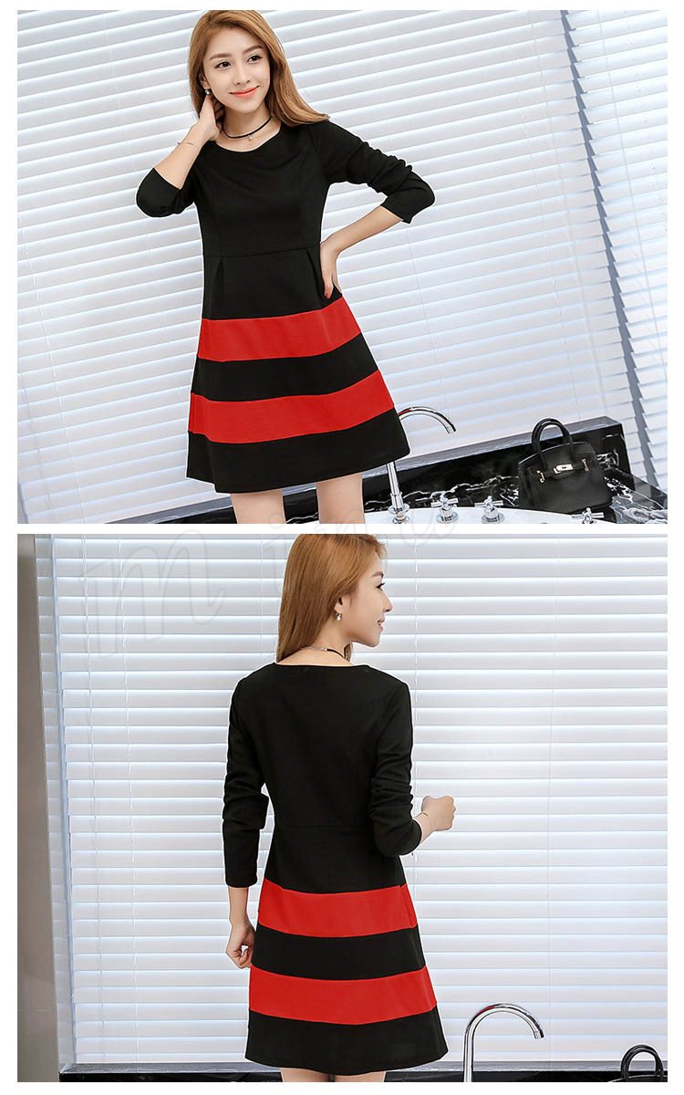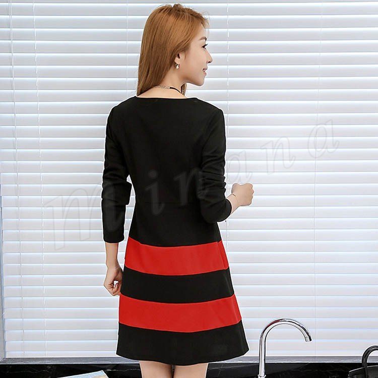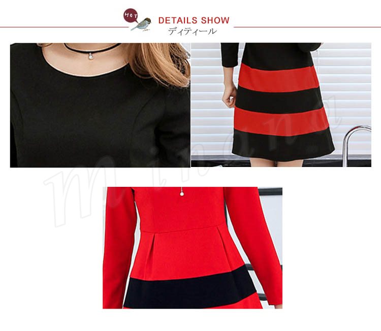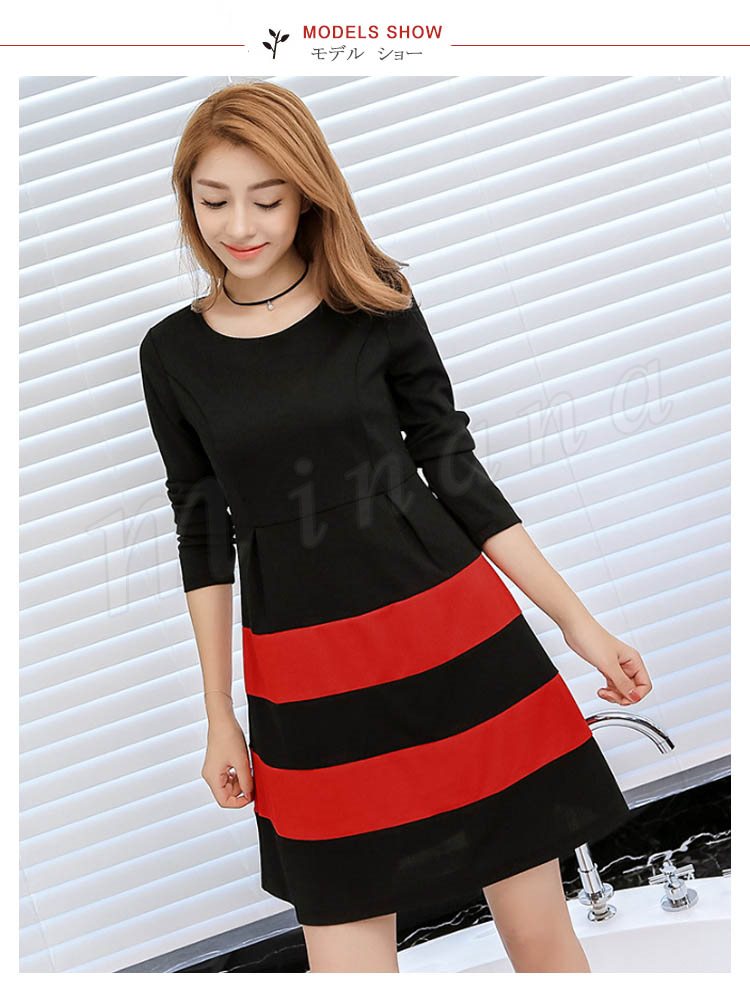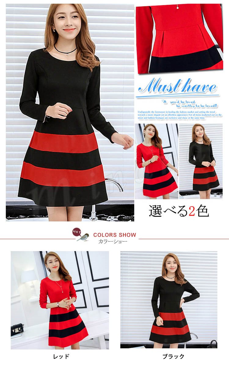 ワンピース 春 長袖 レディース ショート丈 S~2XL大きいサイズ ボーダー Aライン フレア 大人 カジュアル ワンピ ナチュラル フェミ