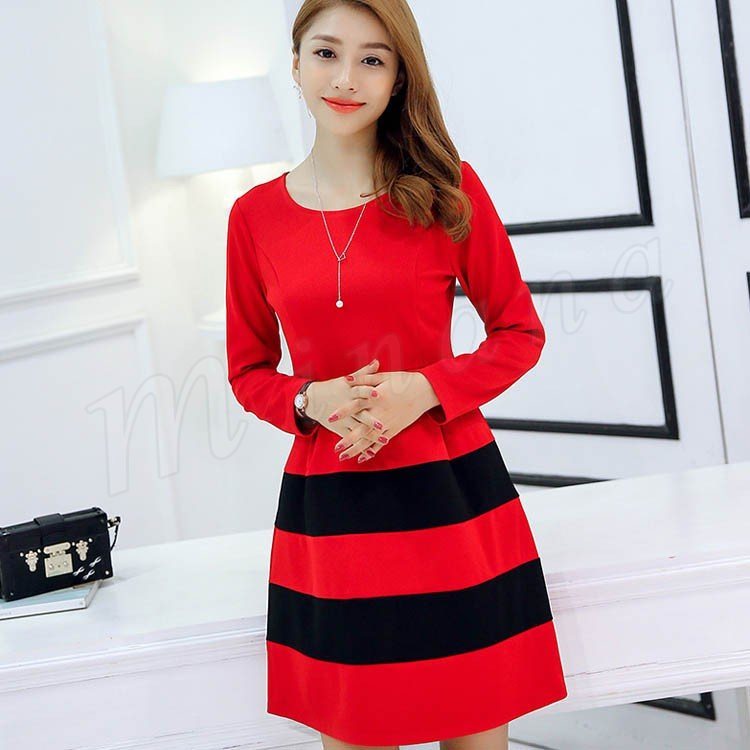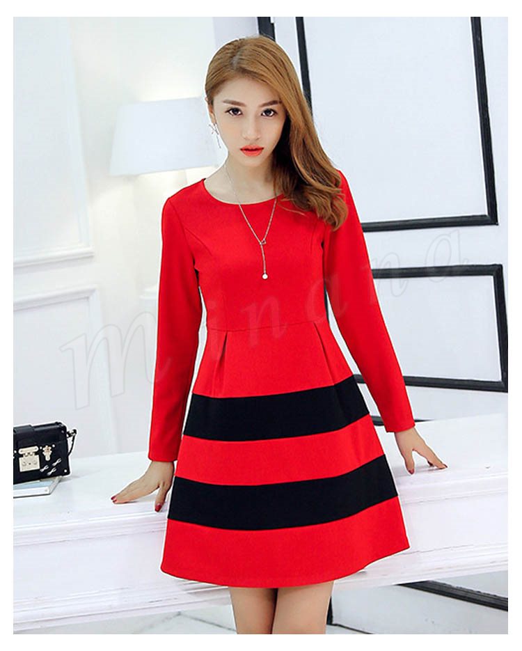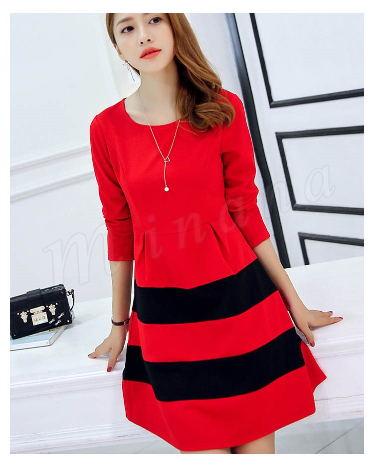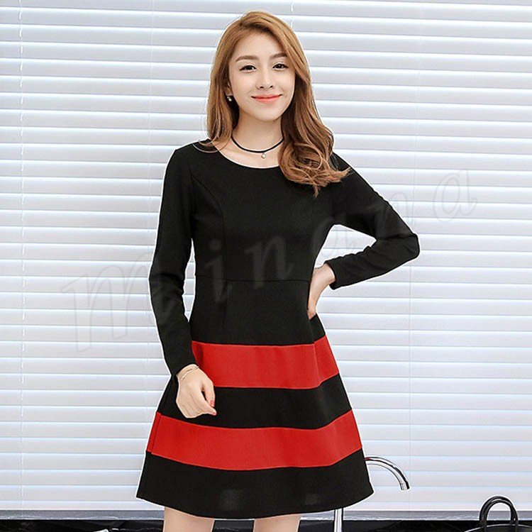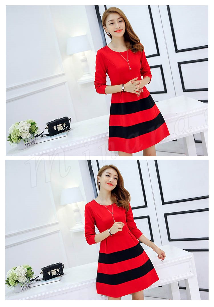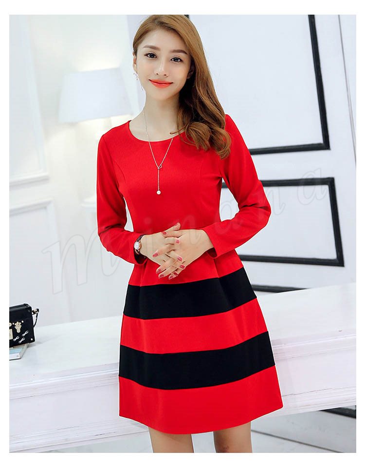 ワンピース 春 長袖 レディース ショート丈 S~2XL大きいサイズ ボーダー Aライン フレア 大人 カジュアル ワンピ ナチュラル フェミ