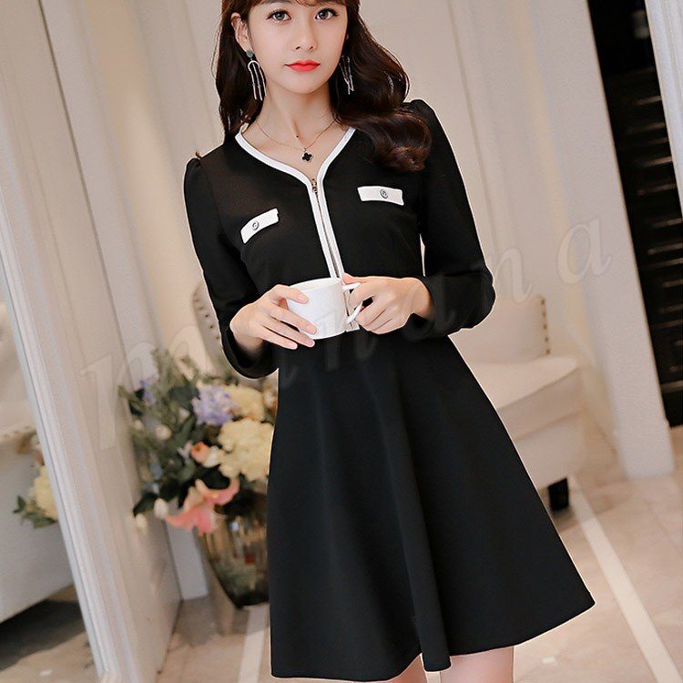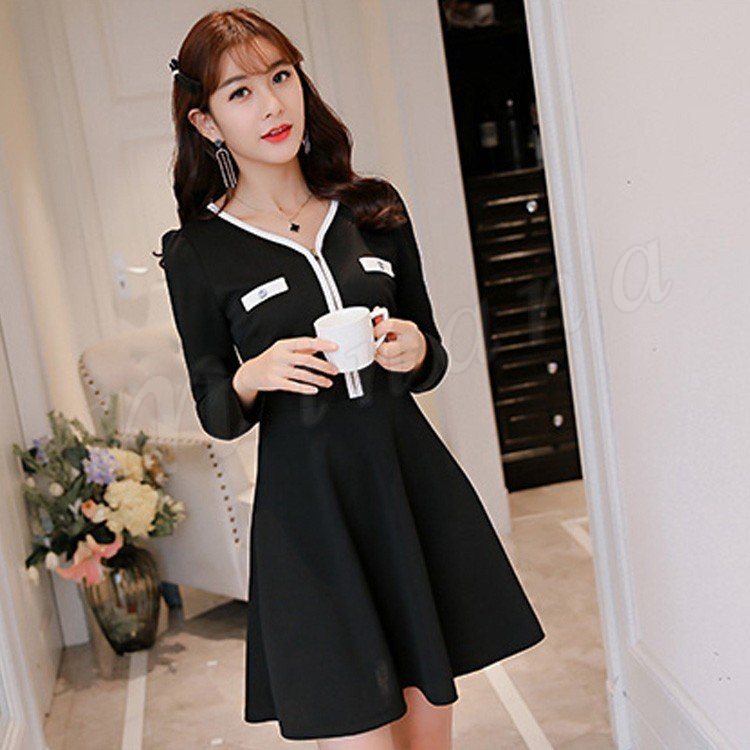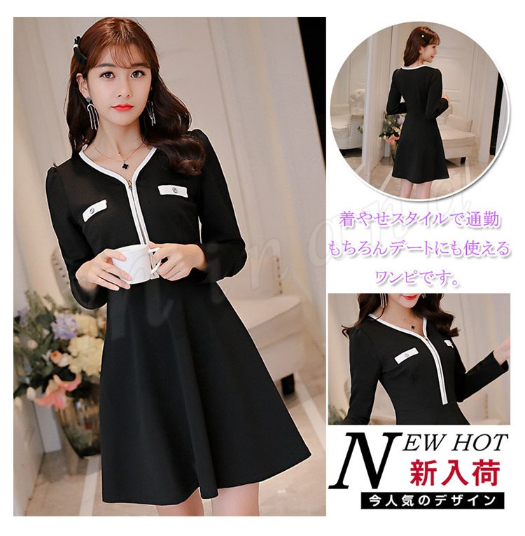 ワンピース チュニック フレア ワンピ Vネック きれいめ 通勤 春