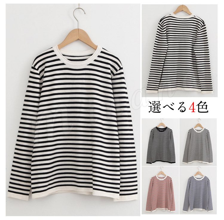 Tシャツ メンズ 長袖 ボーダー柄 tシャツ シンプル クルーネック 丸首 ゆったり カジュアル インナー 2018春秋新作 男性用 おしゃれ ト