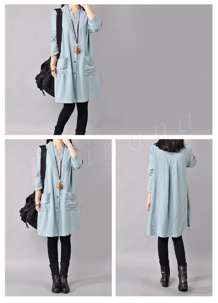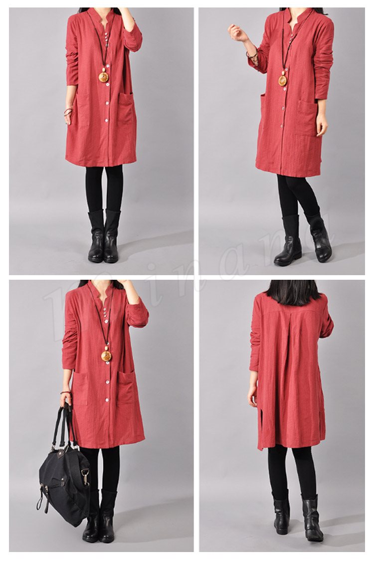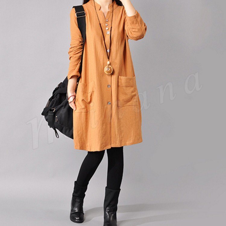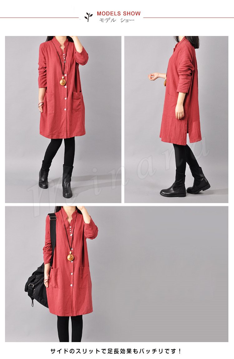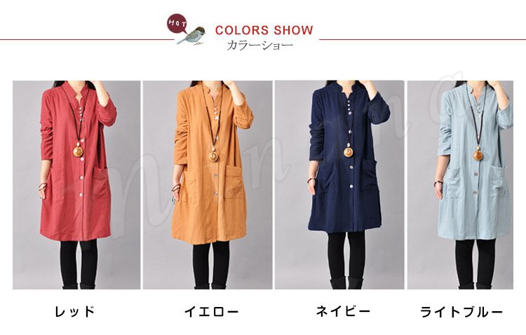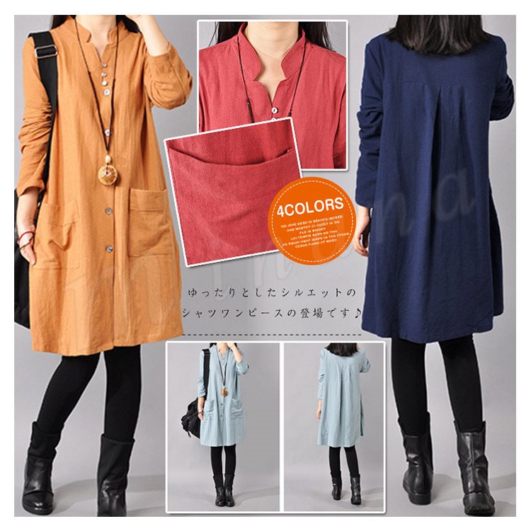 ゆったり シャツワンピース レディース チュニック レッド ネイビー ライトブルー イエロー
