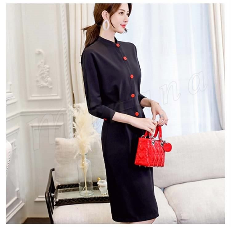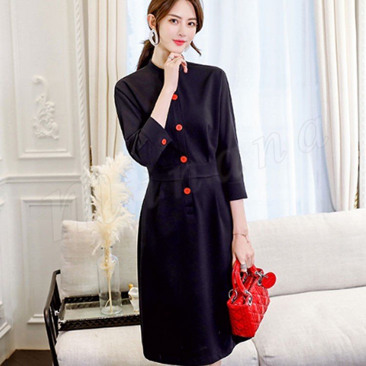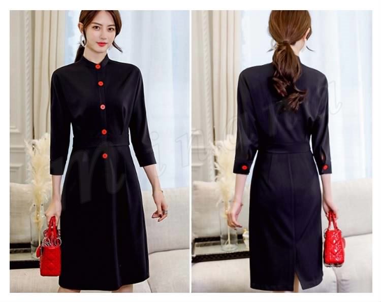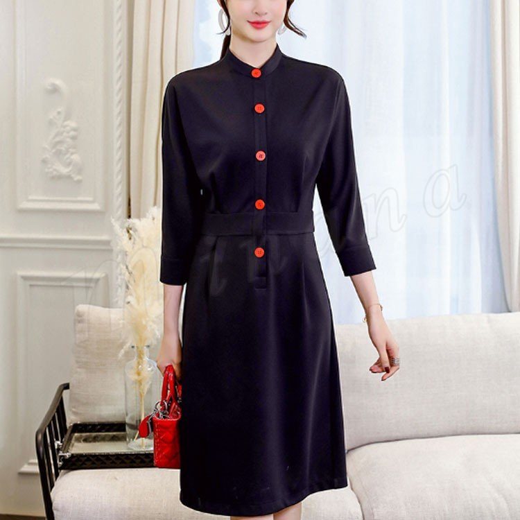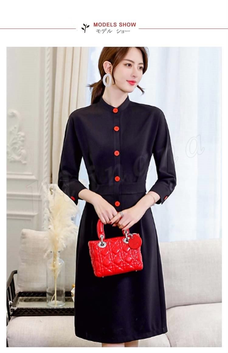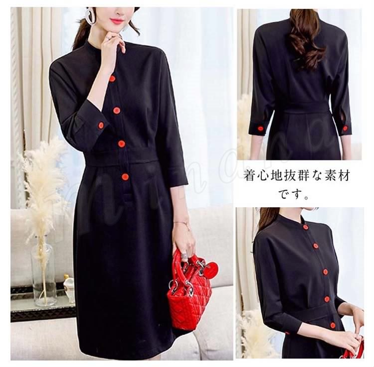 ワンピースハイネック通勤ワンピ 長袖 春 シャツワンピース レディース