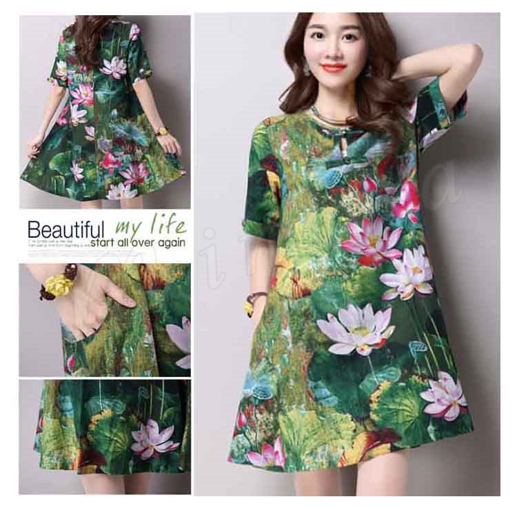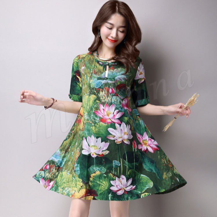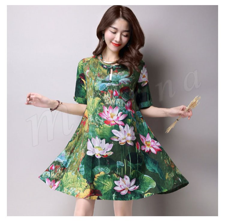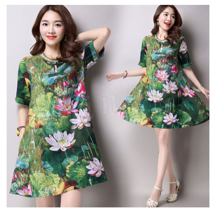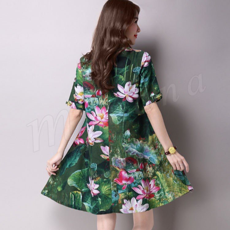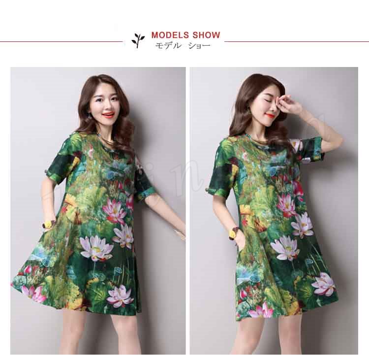 ワンピース シャツワンピ チュニック 体型カ花柄 春夏レディース