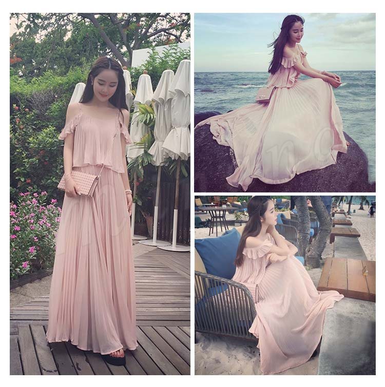 マキシワンピ プリーツ 重ね着風 夏 リゾート キャミソールワンピース 無地 フリル aライン フレア ロング マキシ丈 キャミワンピ パーテ