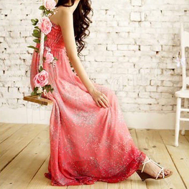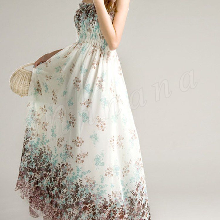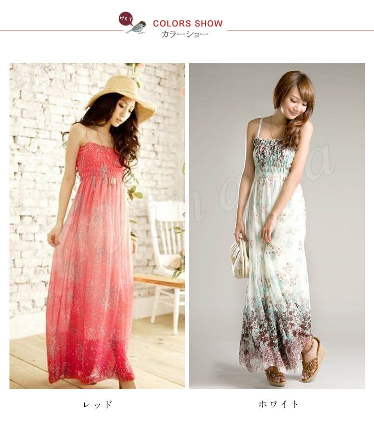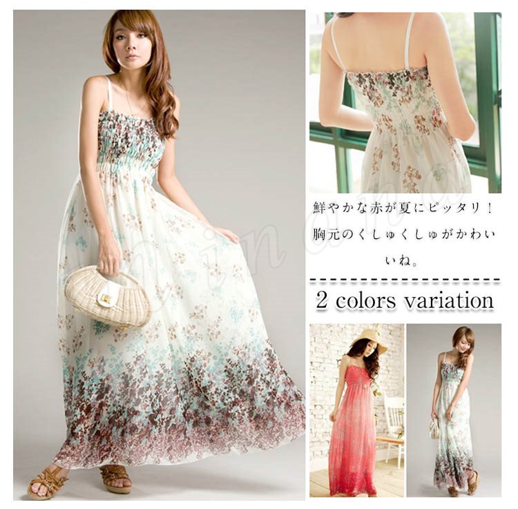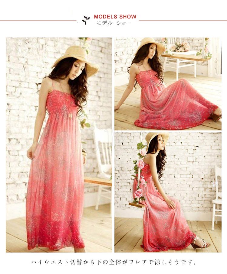 鮮やか花柄マキシ丈ワンピース/リゾート