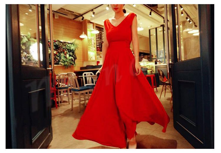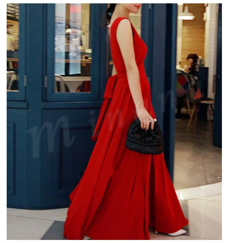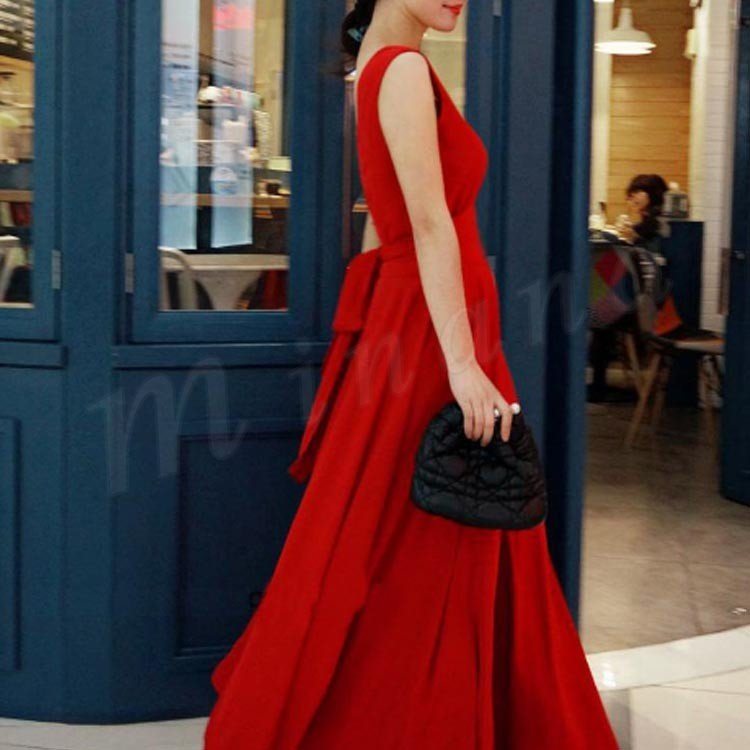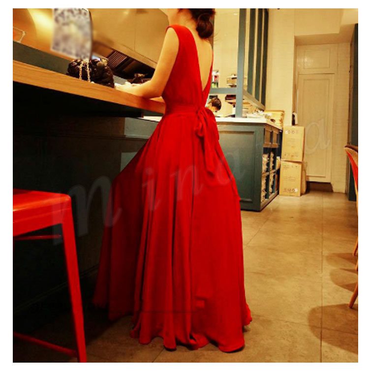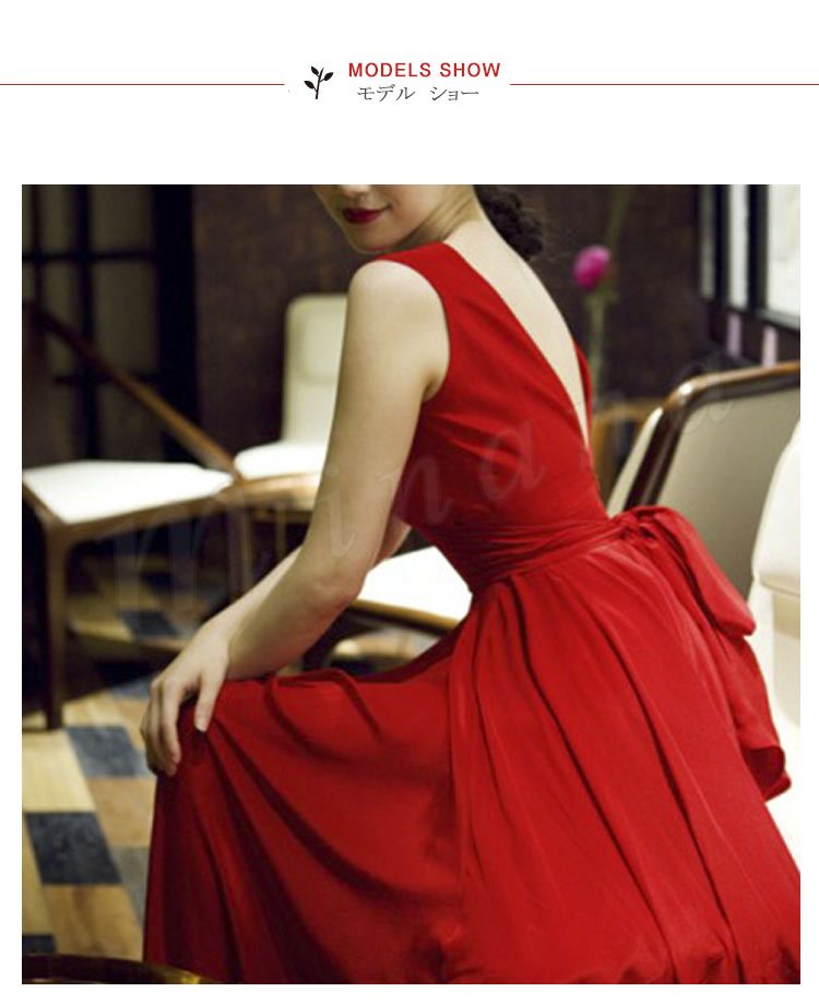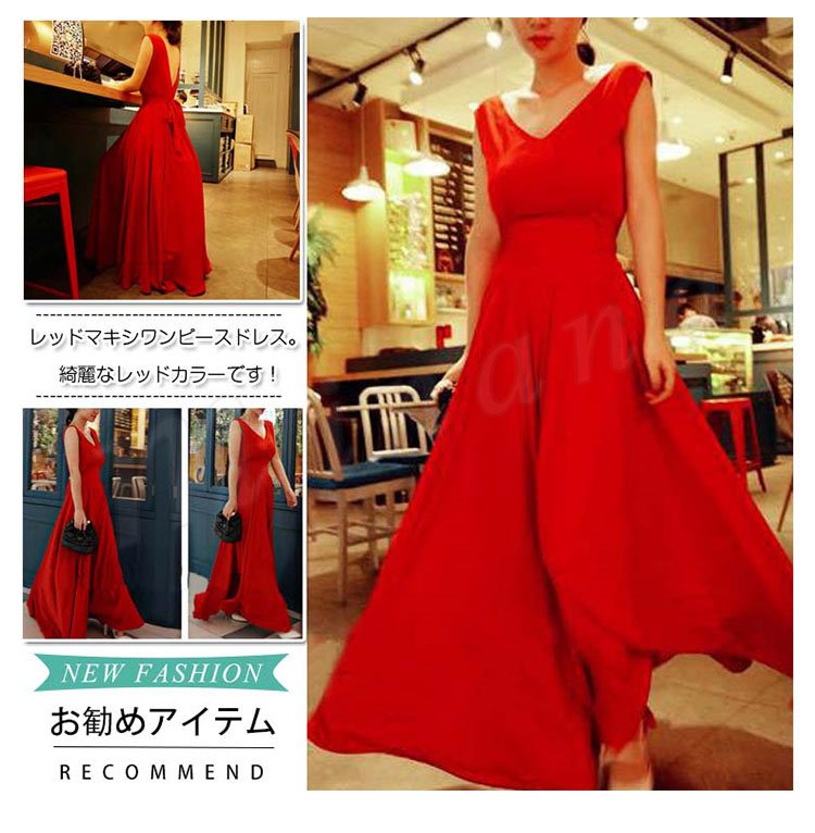 美背 深Vネック 艶 レッド ワンピース 夏 リゾート マキシ丈ワンピース 結婚式 二次会 ドレス リゾートワンピース レディース