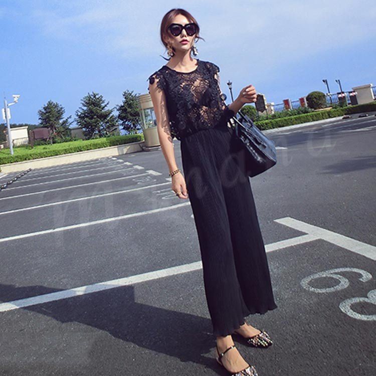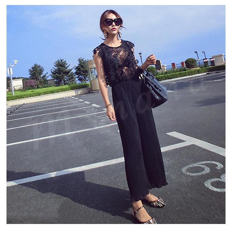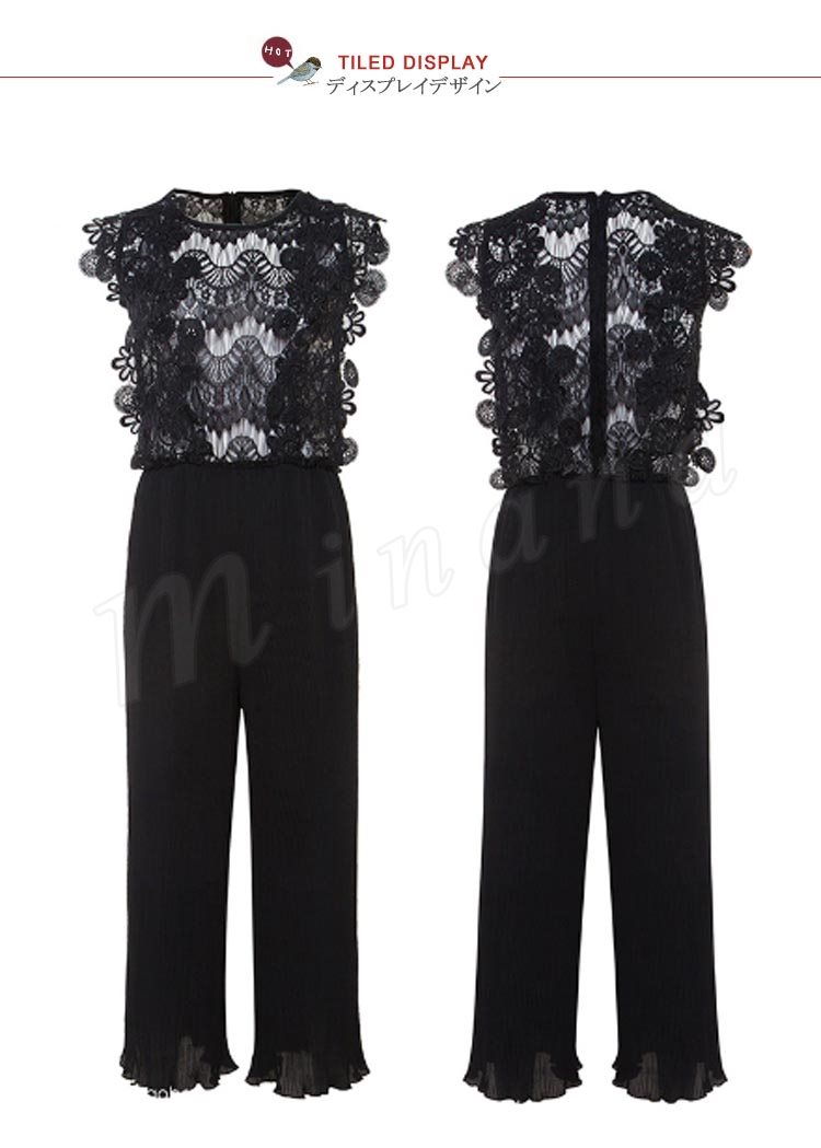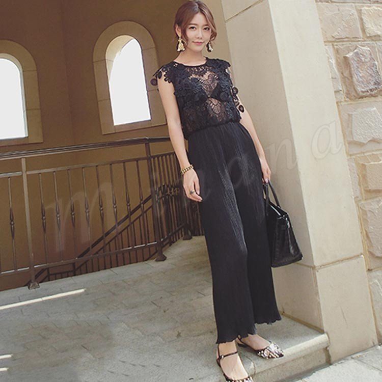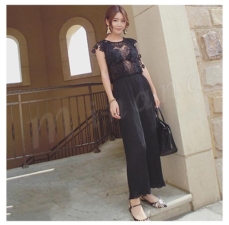 2018新作/オールインワン/レース/レディース/シースルー/プリーツ/パンツドレス/ガウチョ/ワイド/ファッション/きれいめ/おしゃれ/
