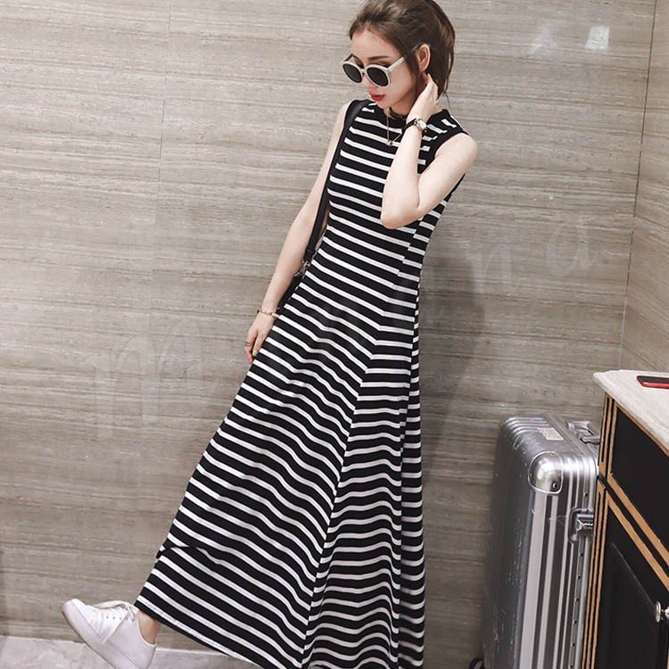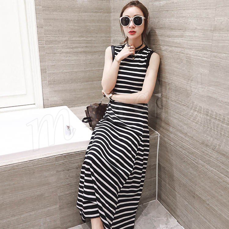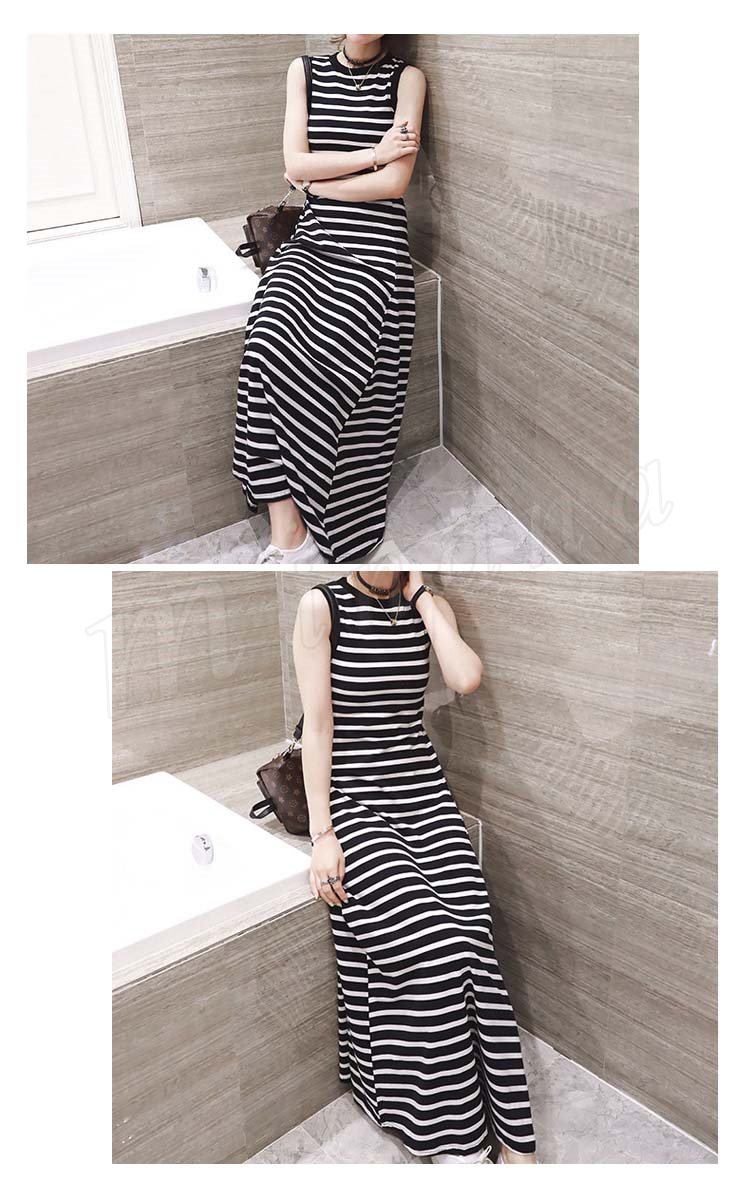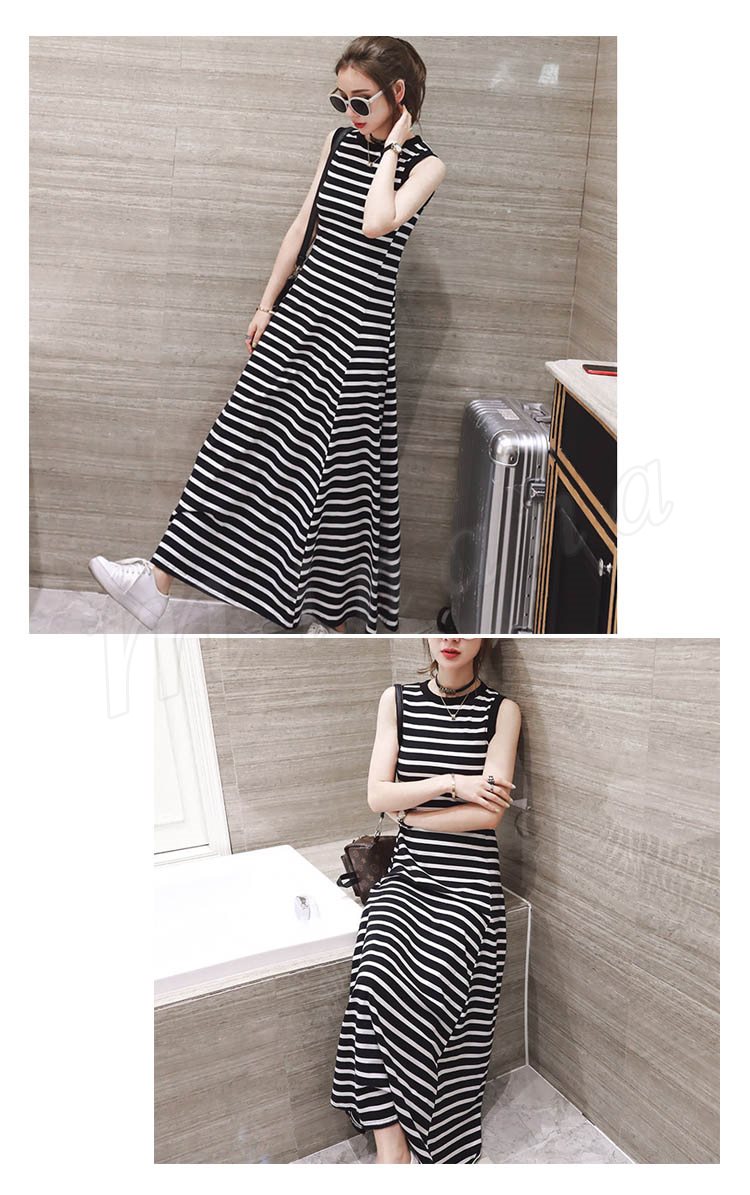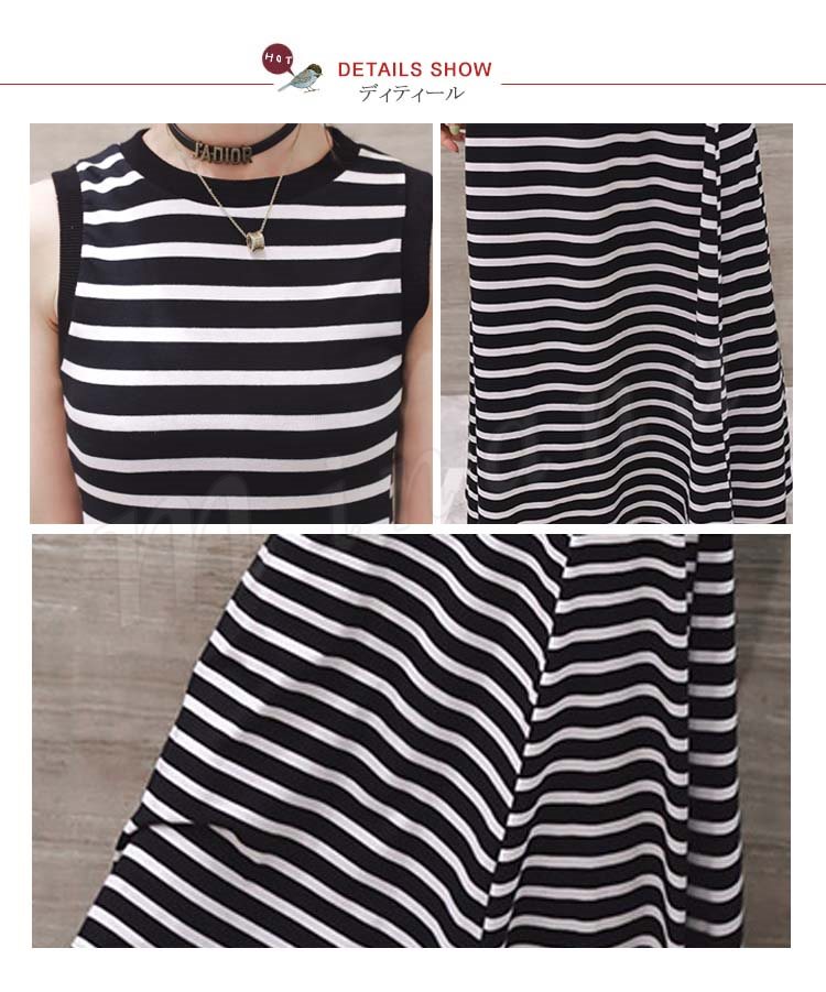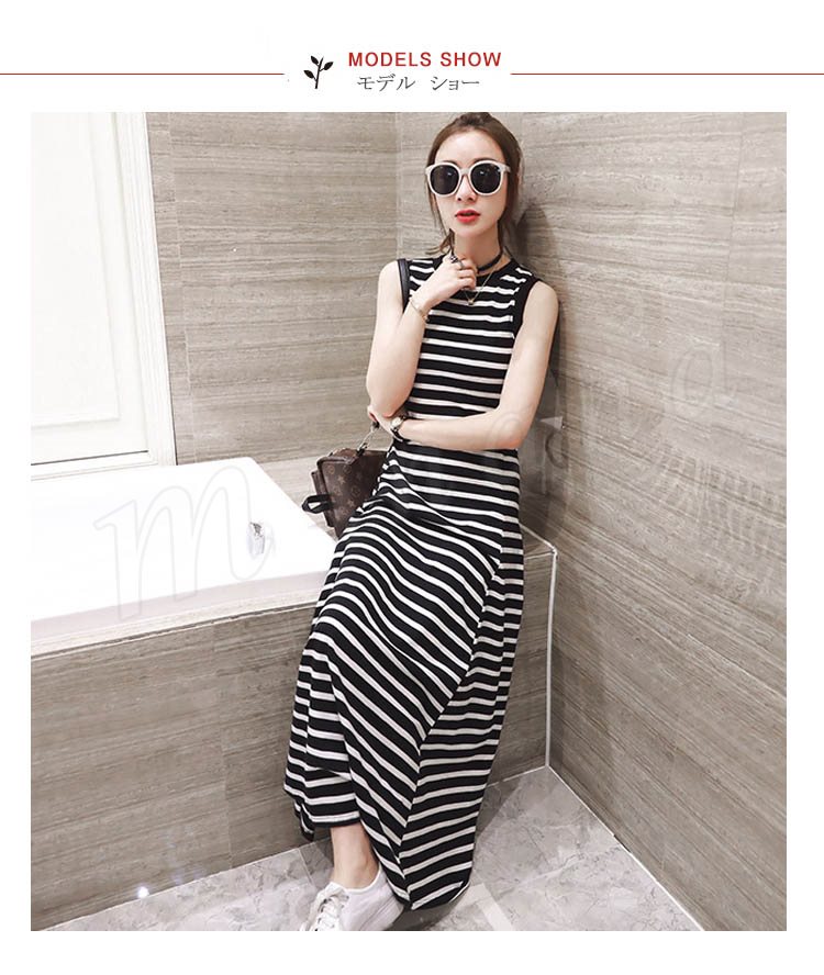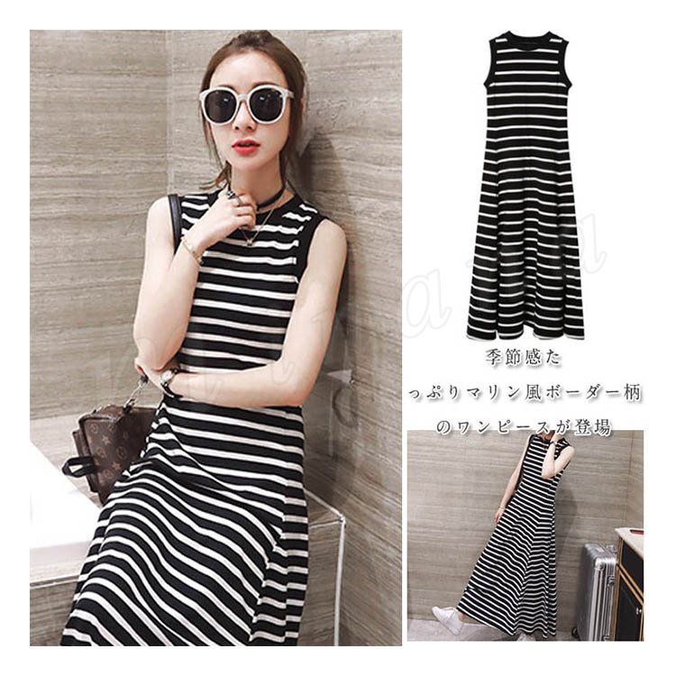 マキシ丈ワンピース キャミワンピース ノースリーブ ボーダー柄