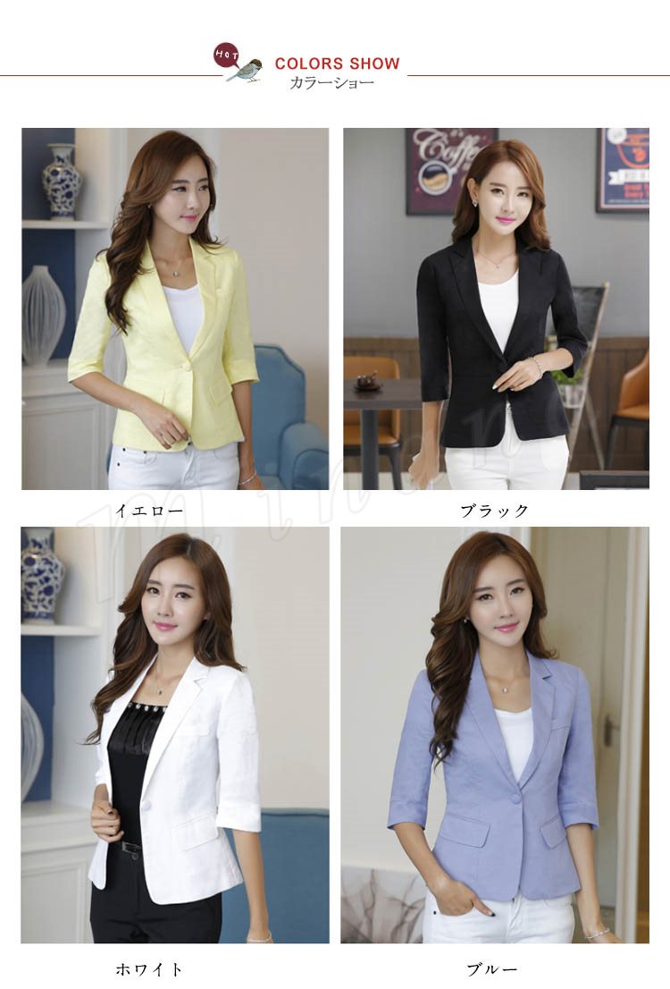 2018新作/テーラードジャケット/レディース/無地/大きいサイズ/リネン/カジュアルスーツ/ビジネス/春夏秋/綿麻/七分袖/コート/通勤/オフィ