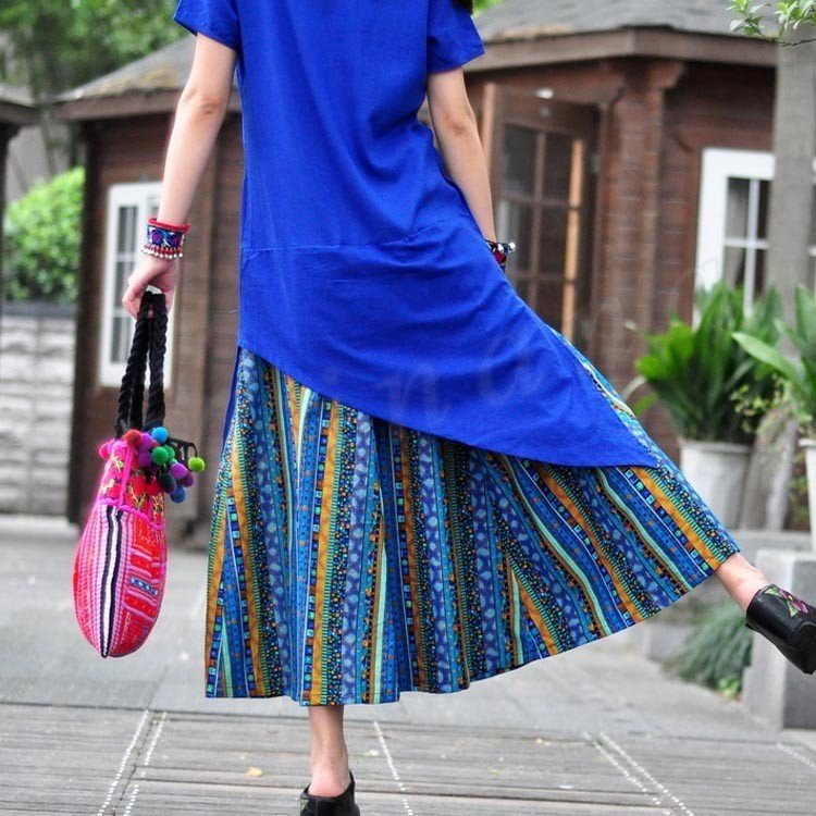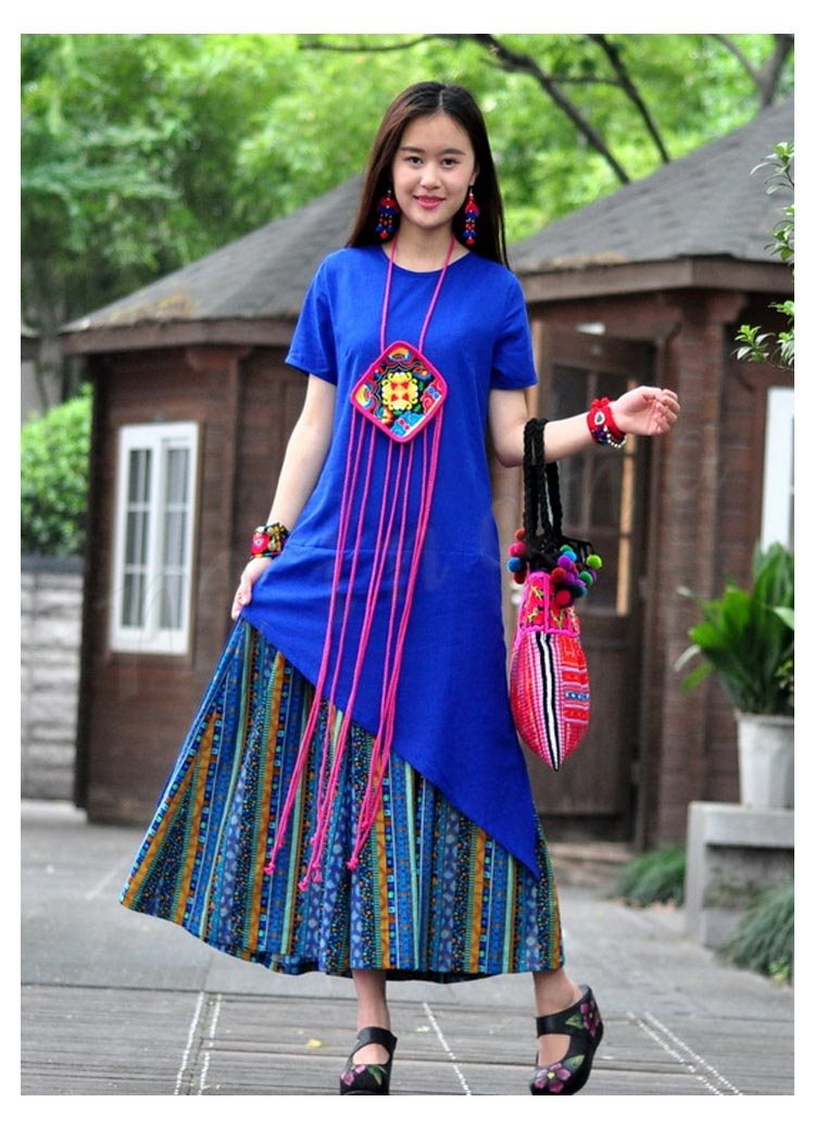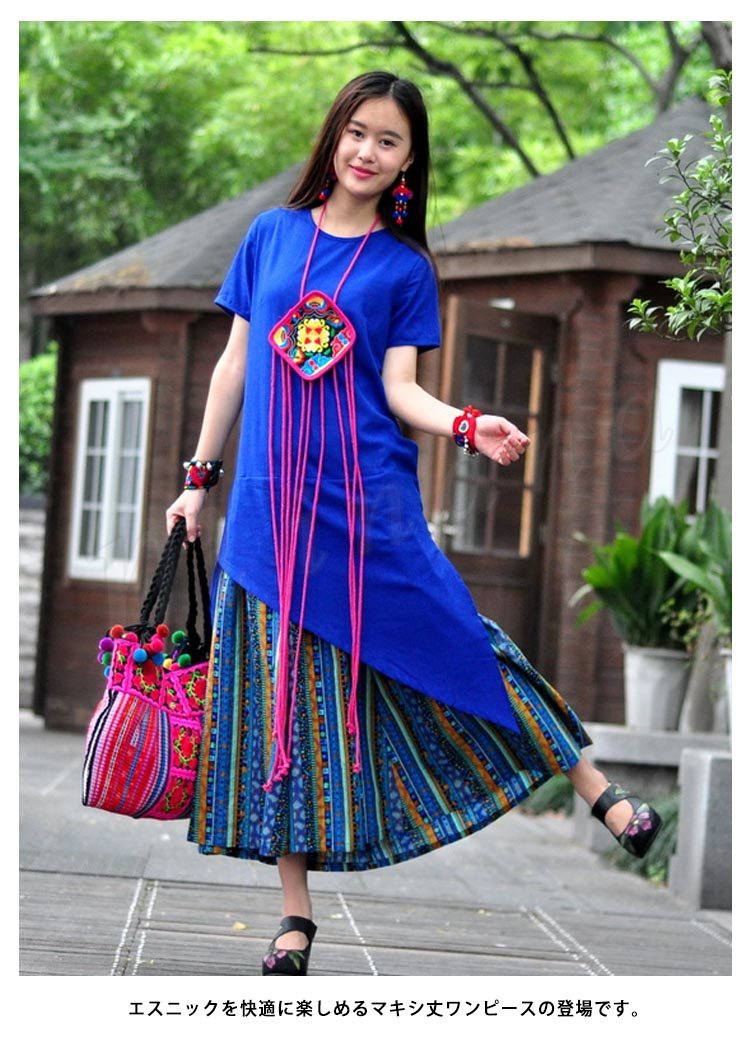 半袖マキシワンピース マキシワンピ マキシ丈ワンピース 刺繍 エスニック 切り替え リゾートワンピ カジュアル 大きいサイズ