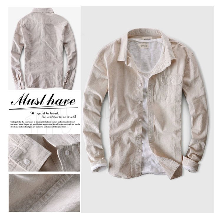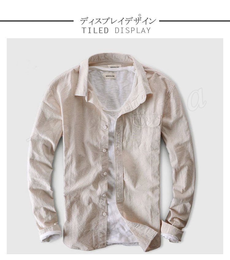 2018新作/リネンシャツ/メンズシャツ/長袖/無地/大きいサイズ/綿麻/カジュアルシャツ/ビジネス/オフィス/オシャレ/亜麻/春夏秋/シンプル/