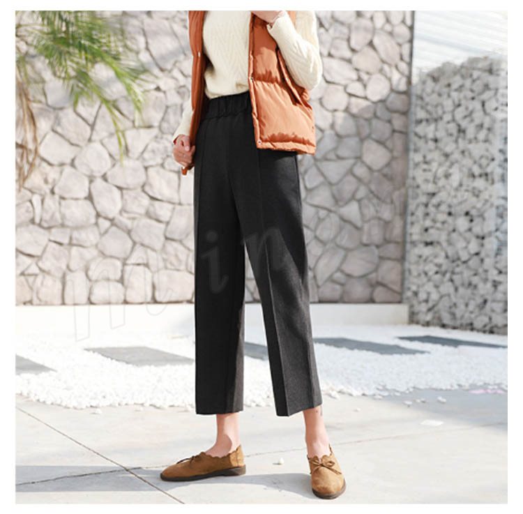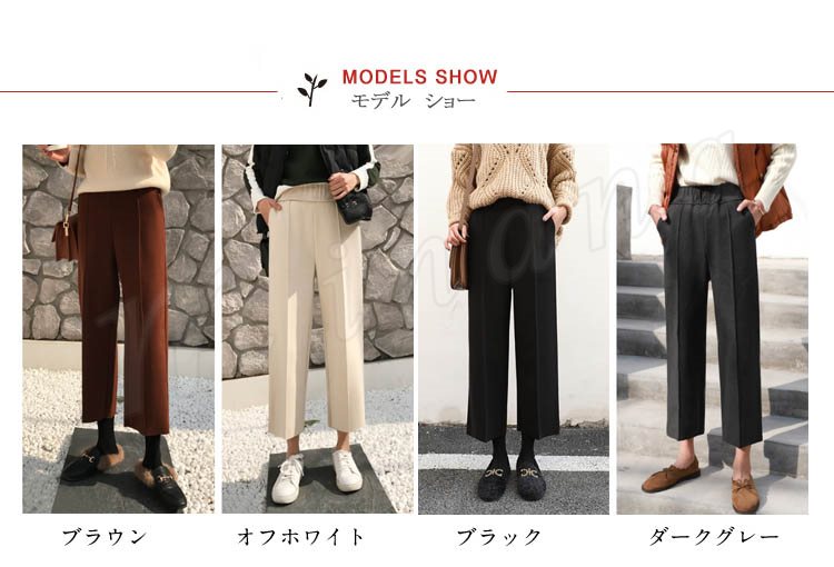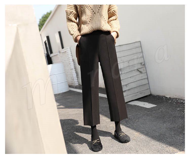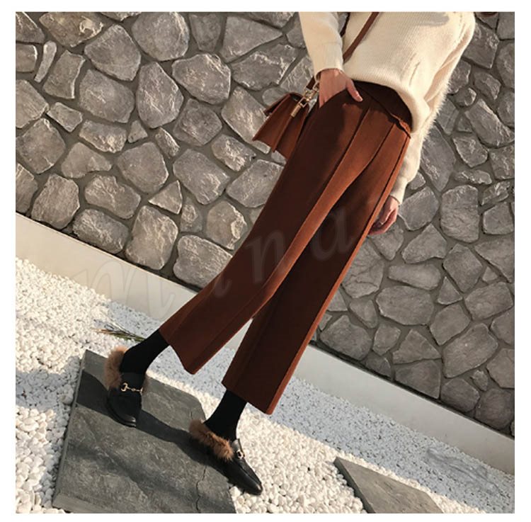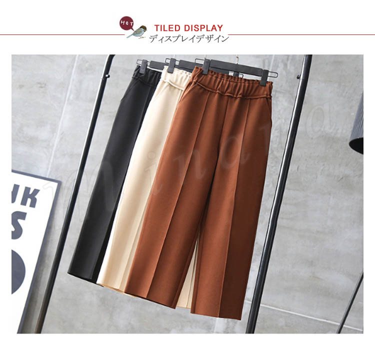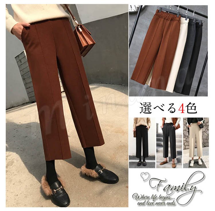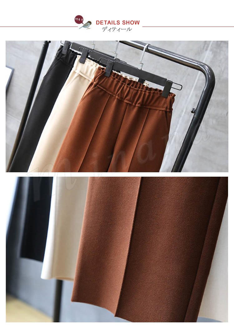 春秋新作/ガウチョパンツ/レディース/ワイドパンツ/九分丈/ウエストゴム/厚手/スカンツ/ビジネス/通勤/無地/カジュアルパンツ/春秋冬/着痩せ/