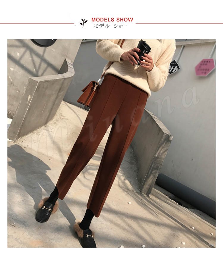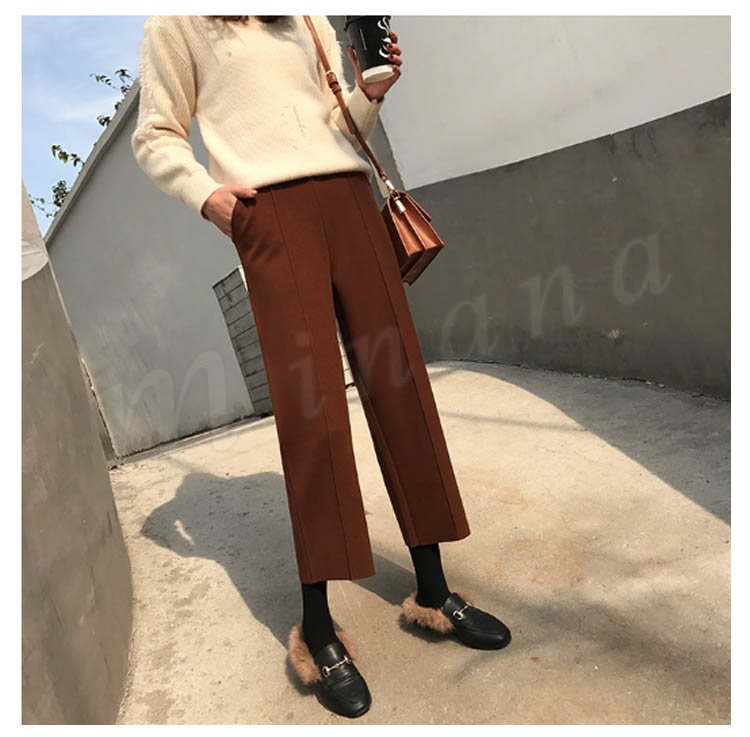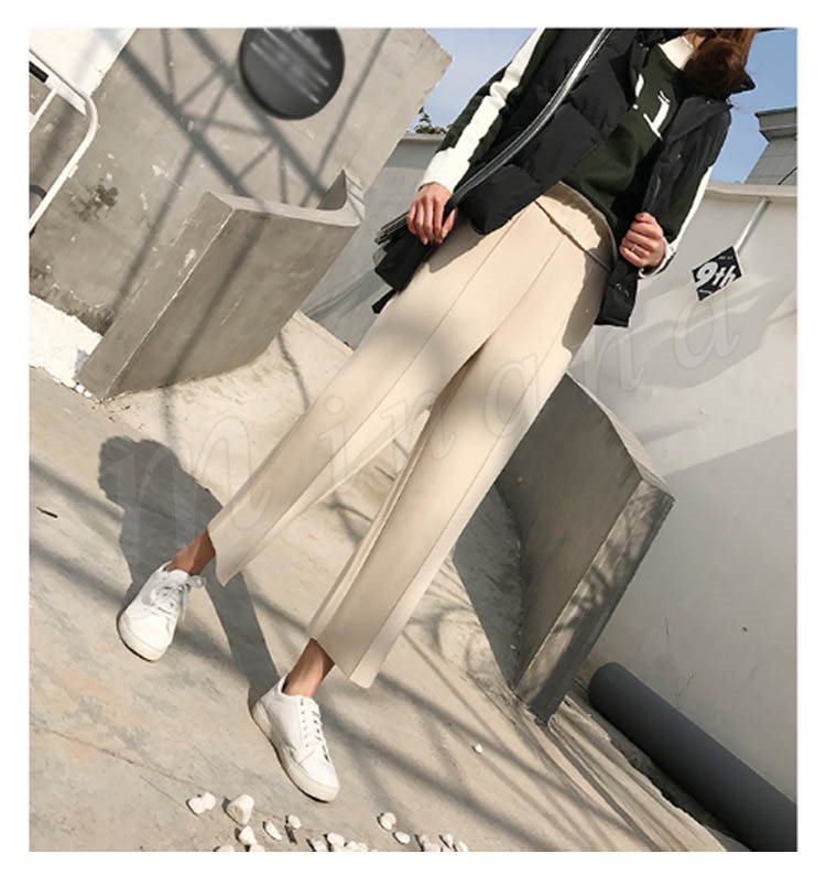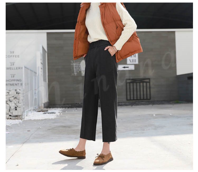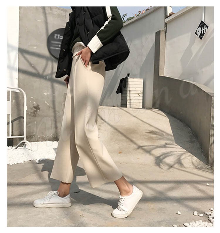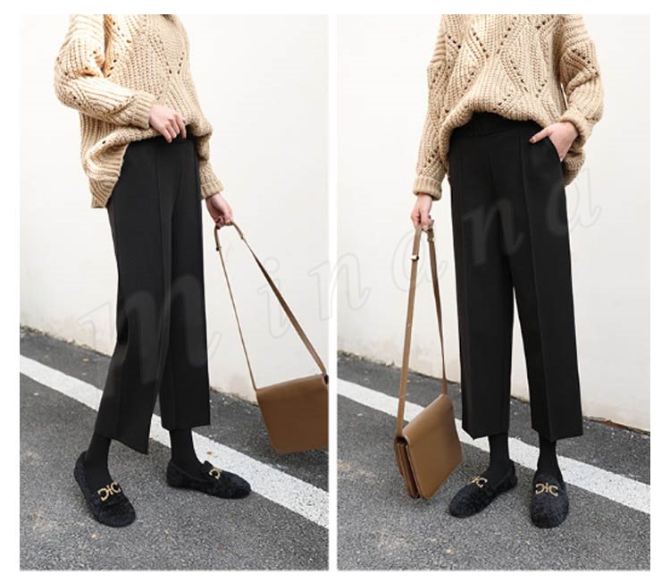 春秋新作/ガウチョパンツ/レディース/ワイドパンツ/九分丈/ウエストゴム/厚手/スカンツ/ビジネス/通勤/無地/カジュアルパンツ/春秋冬/着痩せ/