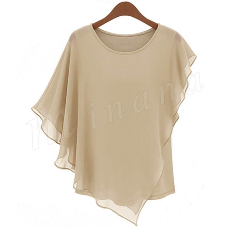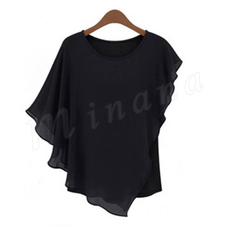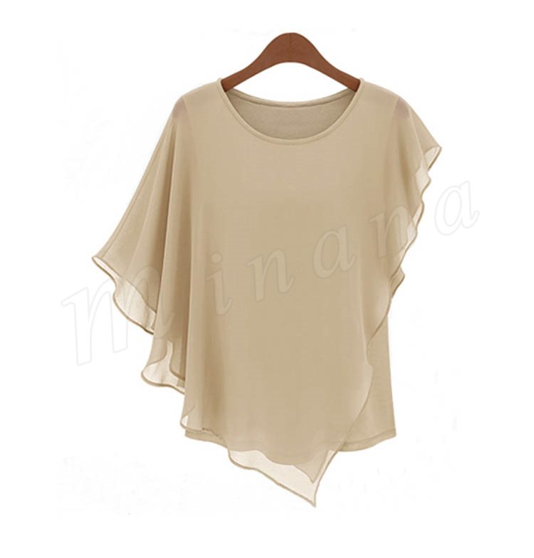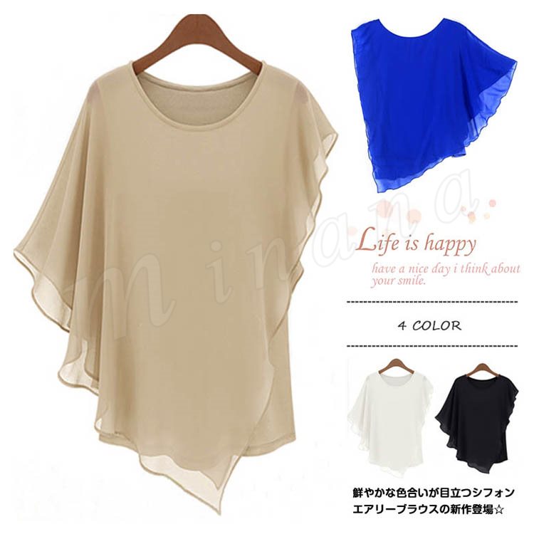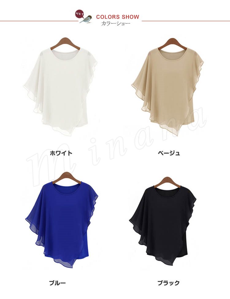 レディース トップス ドルマン ブラウス Tシャツ シフォン フリル 通勤