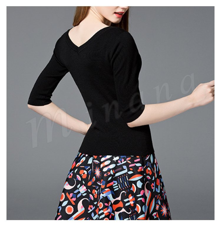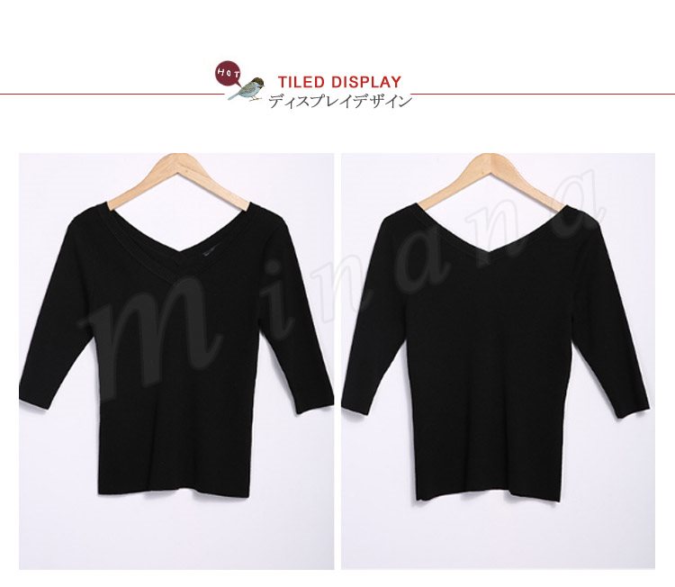 ニット Uネック レディース トップ ニット セーター トップス 修身 レディースファッション ショート丈 トップス 七分袖 無地