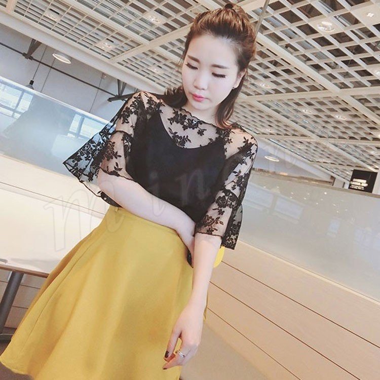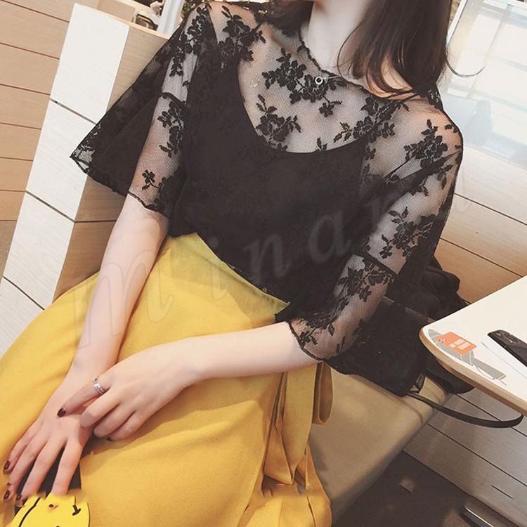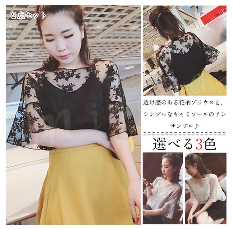 ブラウス 2点セット レディース 花柄 キャミソール レース 半袖 重ね着セット トップス タンクトップ ゆったり 春夏